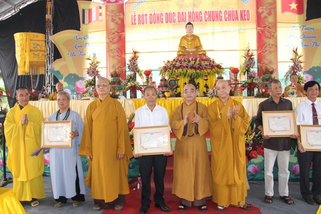Về phía chính quyền có ông Nguyễn Khắc Hình – Bí thư Đảng ủy – Chủ tịch HĐND xã Kim Sơn; ông Nguyễn Hùng Cường – Phó Bí thư đảng ủy – Chủ tịch UBND xã Kim Sơn cùng đại diện lãnh đạo các cơ quan ban ngành và chính quyền sở tại và đông đảo Phật tử thập phương cùng về tham dự.