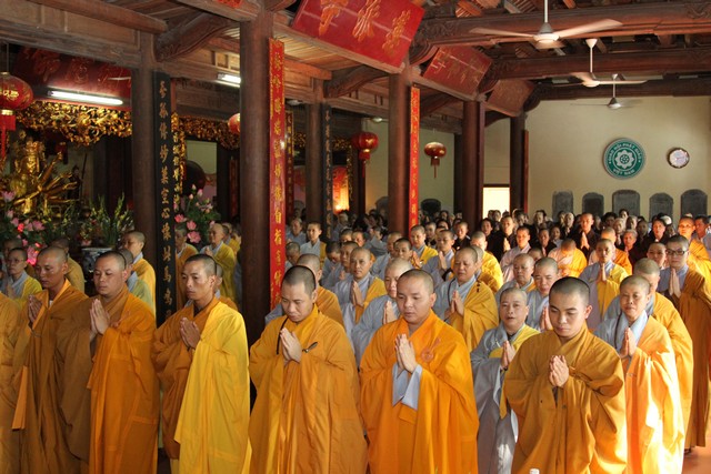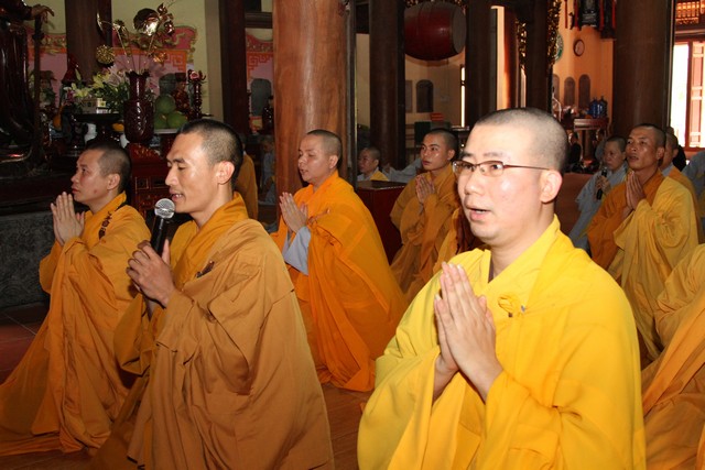 Mở đầu buổi lễ, toàn thể đại chúng đã vân tập về chính điện để lễ tạ Tam Bảo, lễ tạ Tổ sư và Hộ pháp chư Thiên.