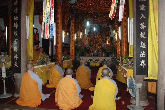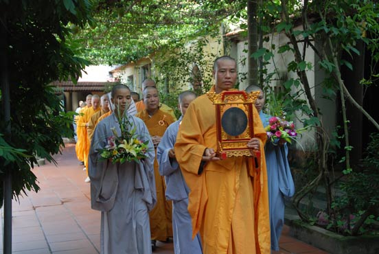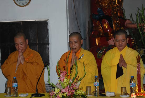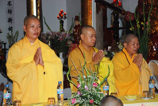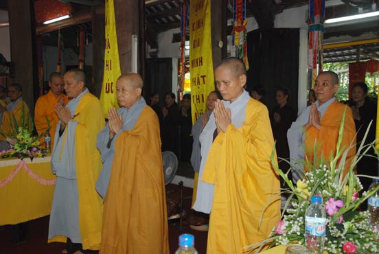 Chứng minh buổi lễ có Thượng tọa Thích Bảo Nghiêm, Phó Chủ tịch HĐTS, Trưởng Ban Hoằng pháp TWGHPGVN, Trưởng Ban Trị sự thành hội PG Hà Nội cùng chư tôn đức trong ban chức sự trường hạ Văn Điển, các trường hạ tiền an cư và 76 hành giả của hạ trường Văn Điển cùng về tham dự.