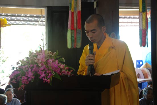 ĐĐ Thích Chân Thường thay mặt cho toàn thể hành giả an cư dâng lời tác bạch tạ pháp”Với phương châm “Phúc tuệ song tu” trên tinh thần “Tri hành hợp nhất” toàn thẻ hành giả an cư đã nỗ lực tịnh tu tam nghiệp, lấy kinh văn làm tôn chỉ hành trì, mượn ý Tổ để nghiêm tầm diệu lý. Ba tháng chuyên tu không phải là dài trong đời sống phạm hạnh, nhưng mỗi hạ đi qua sẽ là một thành quả to lớp góp phần đưa hành giả tiến gần đến bến bờ giải thoát, Chúng con thành kính tri ân công đức của Quý chư Tôn đức đã quan tâm và chỉ giáo cho chúng con mãi giữ vững niềm tin hộ trì chính pháp”.