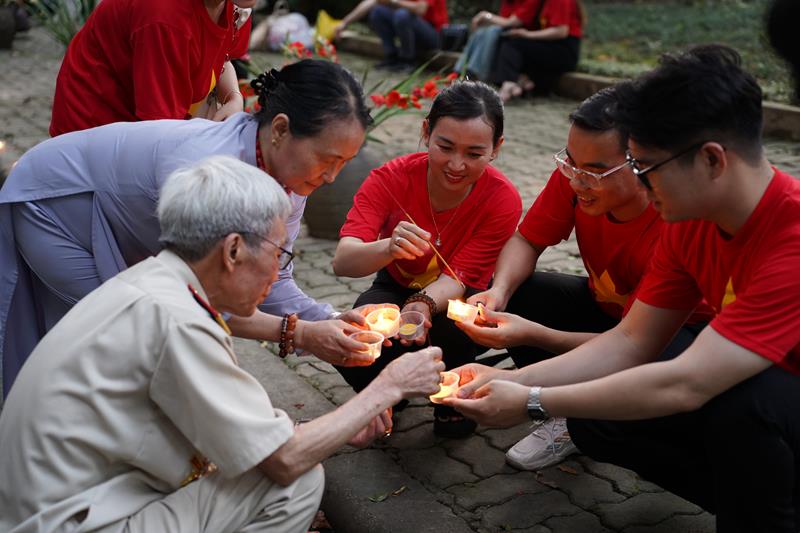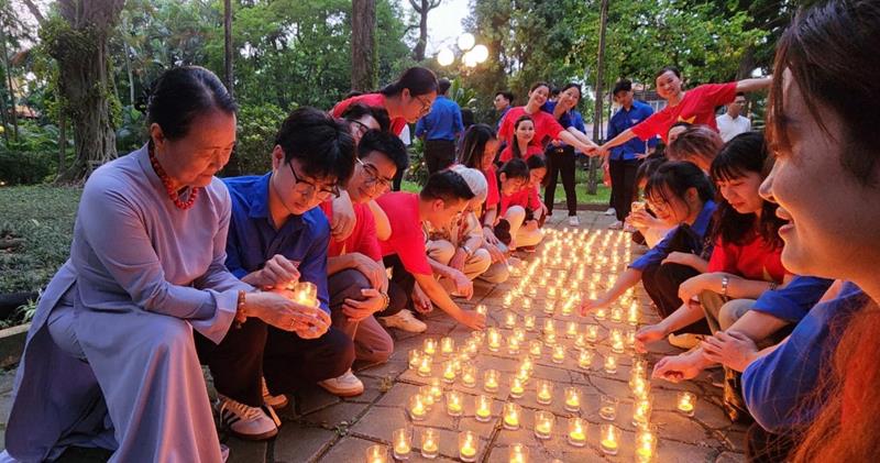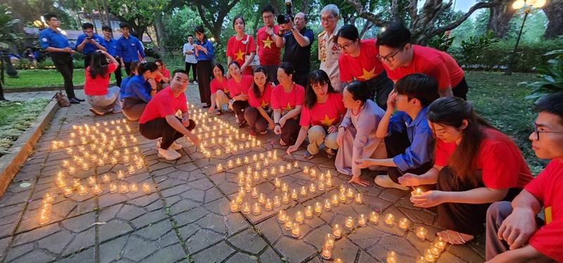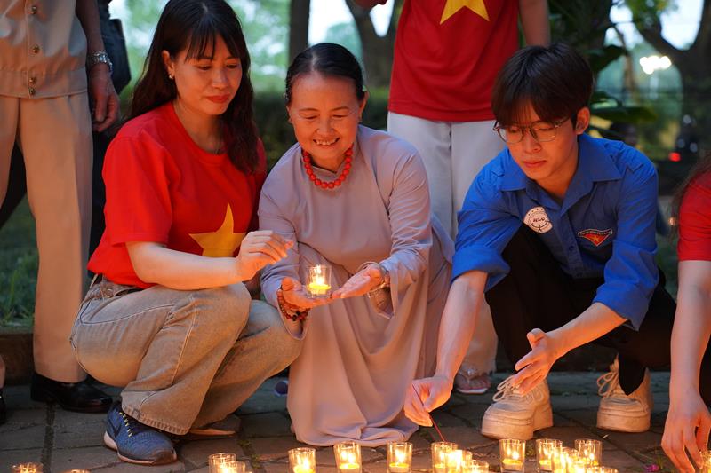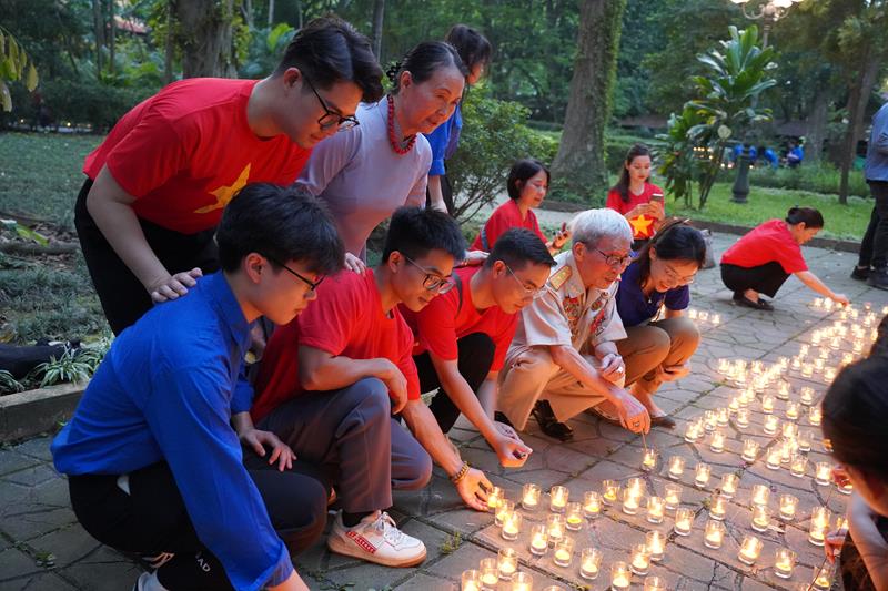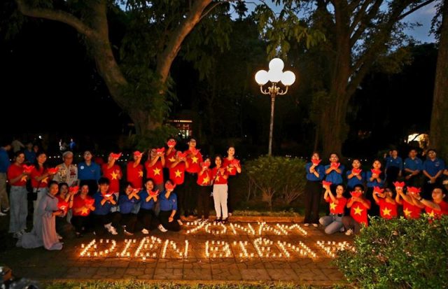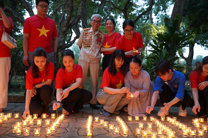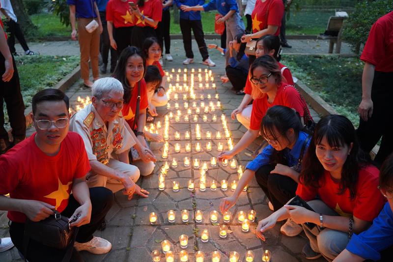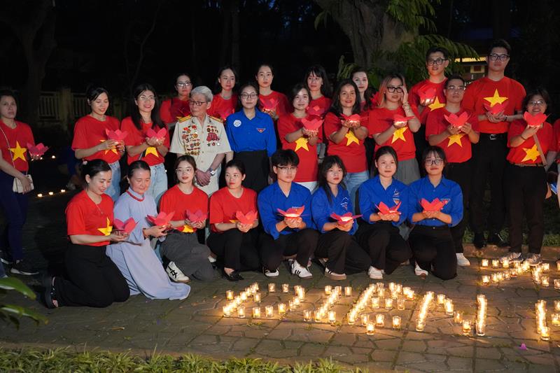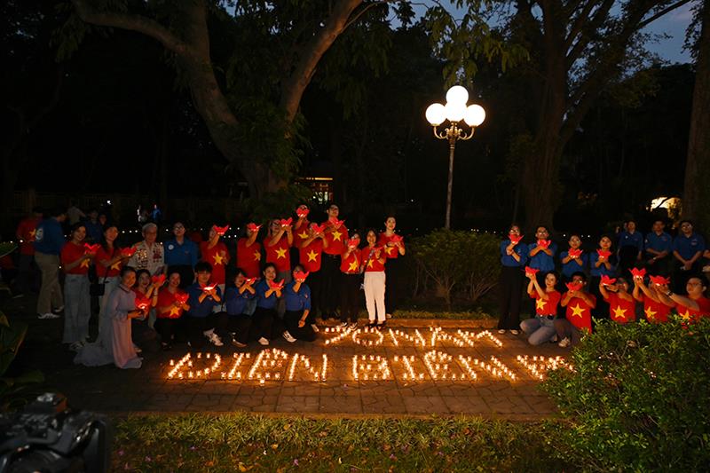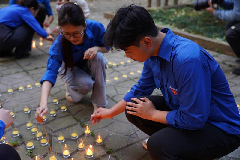 Đoàn đã thắp 7000 nghìn ngọn nến khắp khuôn viên 30 Hoàng Diệu và đăc biệt xếp nến với dòng chữ “70 năm – Chiến thắng Điện Biên Phủ”, do Ban Thường trực CLB Liên Kết Trẻ Việt Nam và CLB Thanh thiếu niên Phật tử phát tâm thành kính tri ân.