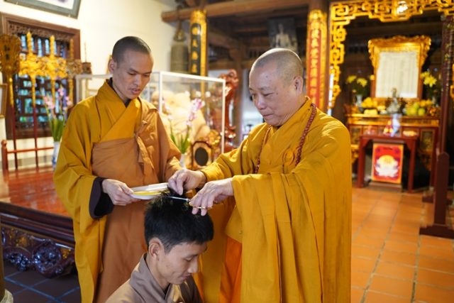 Vì lẽ đó, trong không khí hướng về ngày kỉ niệm Đức Bồ Tát Quán Thế Âm xuất gia 19-9, Hòa thượng Thích Bảo Nghiêm đã làm lễ thế phát xuất gia cho 2 thiện nam: Vũ Đức Dũng – pháp danh Tục Giang là đệ tử của Thượng tọa Thích Chiếu Tuệ – Phó Ban Hoằng pháp Trung ương; Đào Thanh Nghị – pháp danh Bản Khiêm là đệ tử của Đại đức Thích Tục Kha (pháp tử của Thượng tọa Thích Chiếu Tuệ). Sau khi làm lễ thế phát, Hòa thượng Thích Bảo Nghiêm đã khuyến tấn các chú tiểu tinh tiến tu hành, nghiêm trì giới luật, thực hành đúng hạnh nguyện của Người xuất gia và luôn lấy việc Học – Tu làm quan trọng nhất.