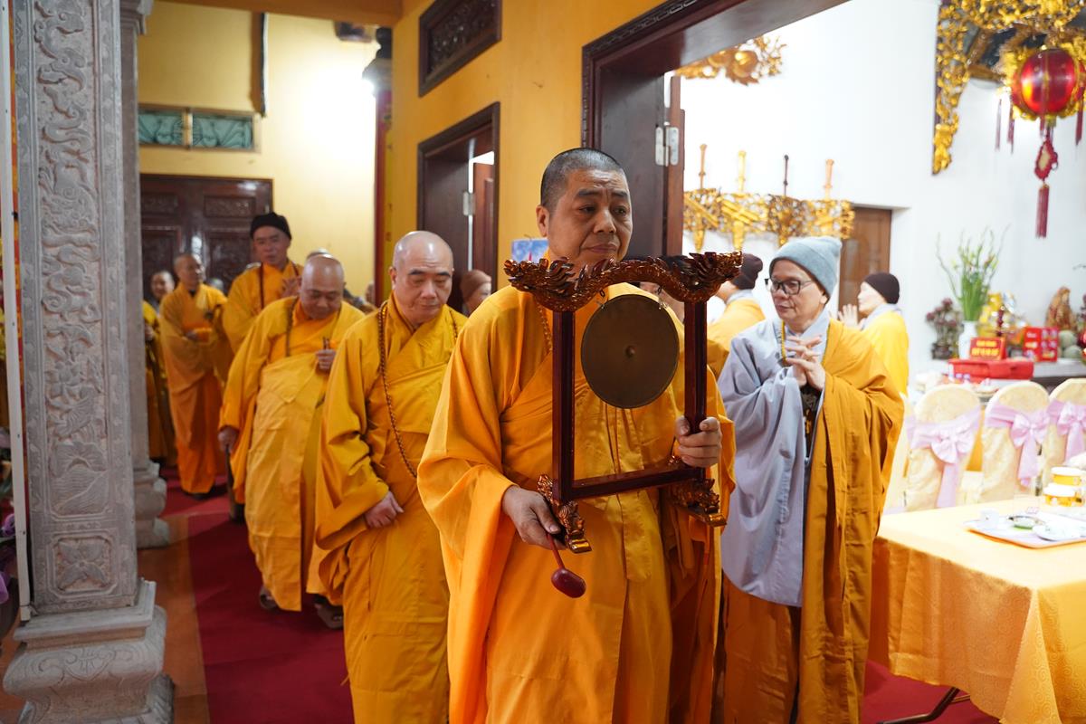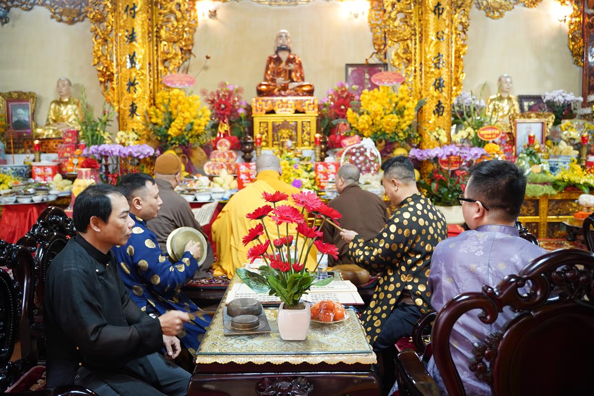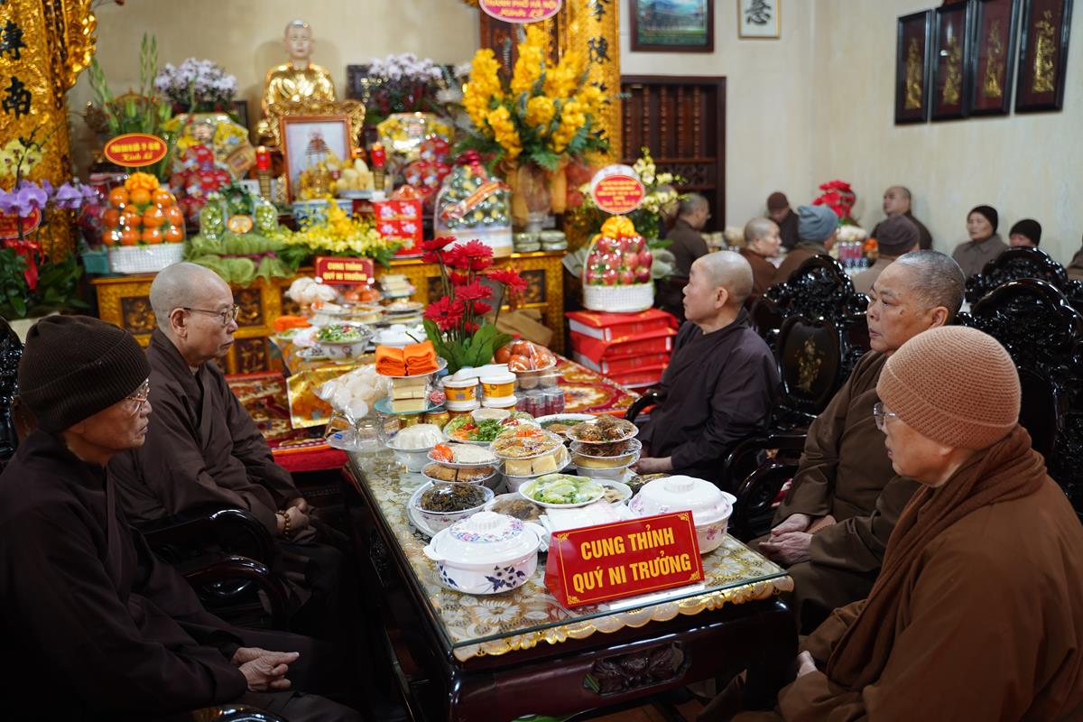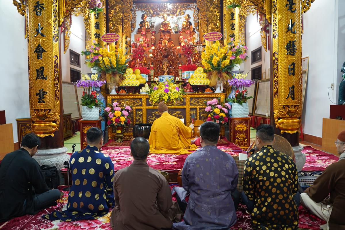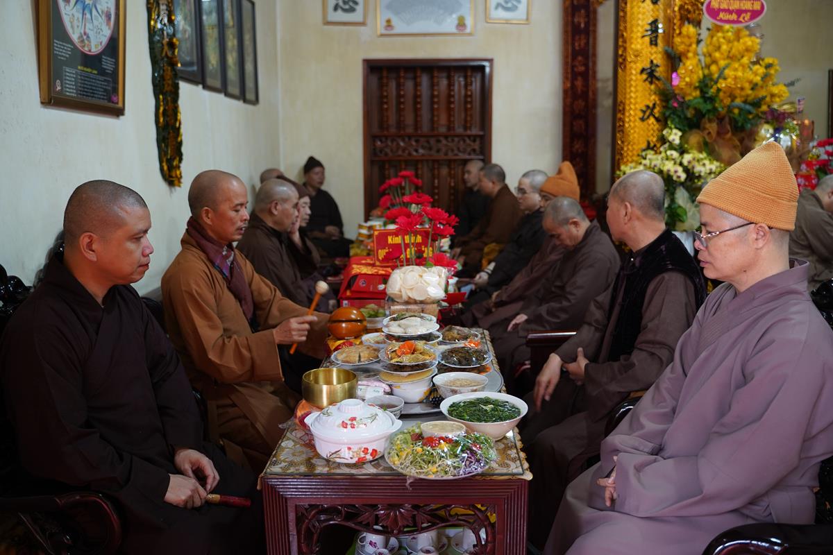 Tại nơi chính điện và Tổ đường, chư Tôn đức đã thực hiện nghi thức cúng Phật, cúng giác linh.