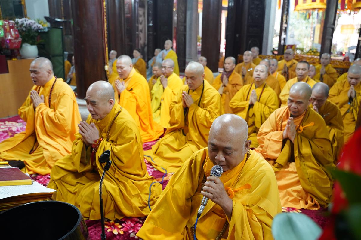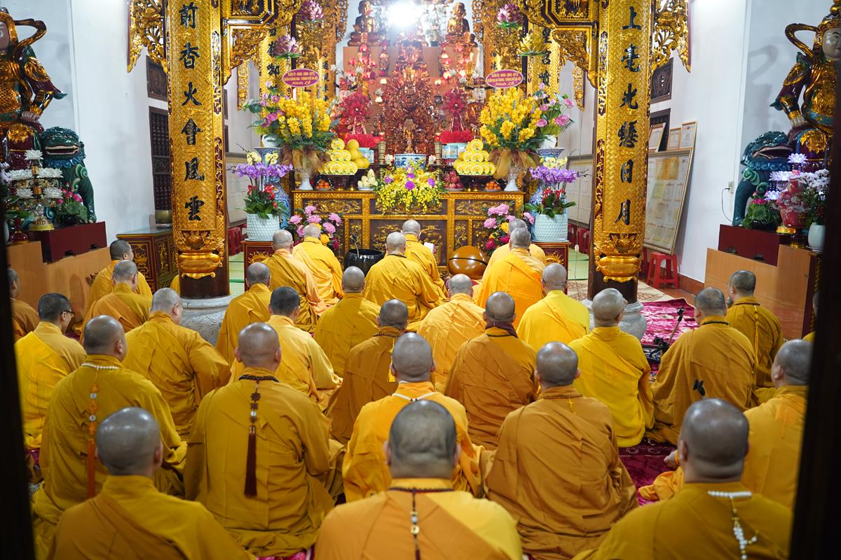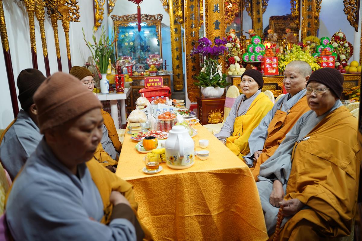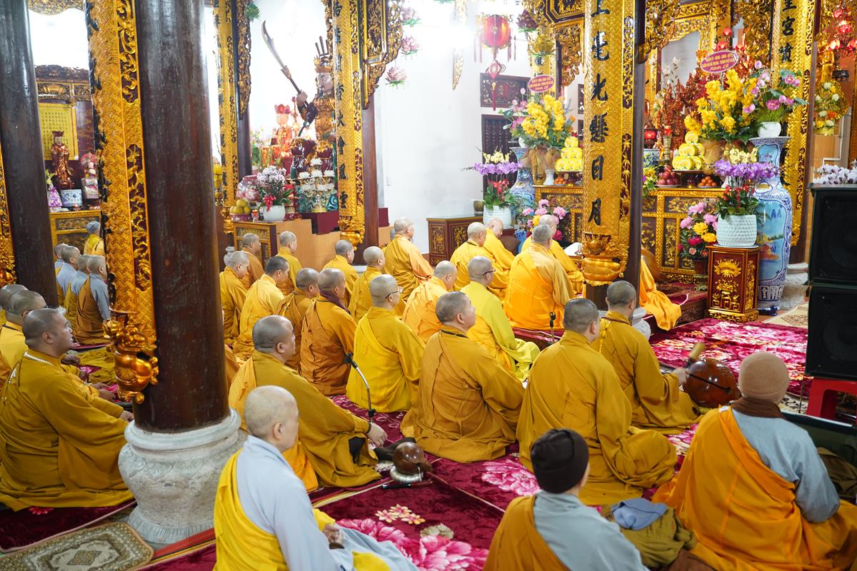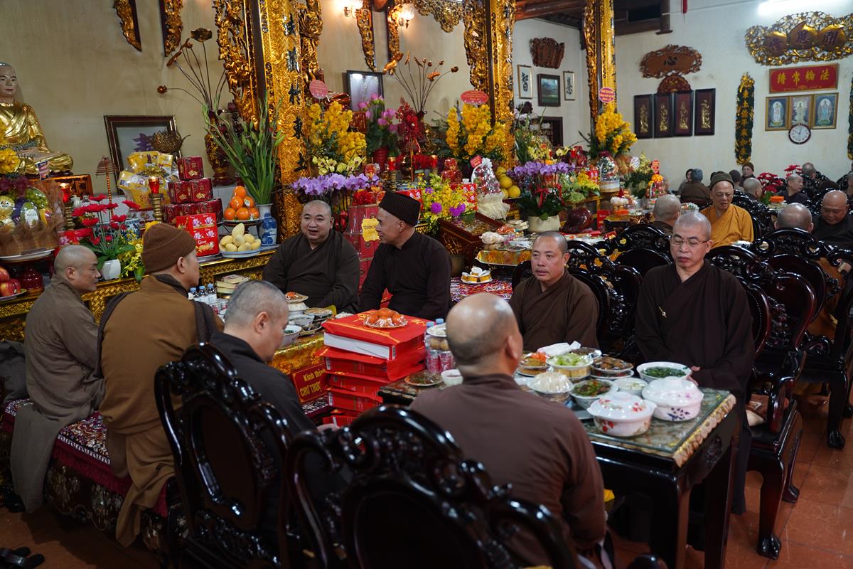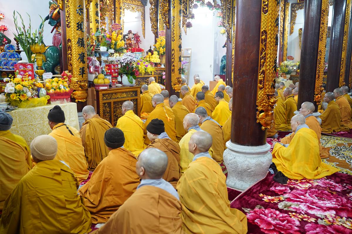 Tại nơi chính điện và Tổ đường, chư Tôn đức đã thực hiện nghi thức cúng Phật, cúng giác linh.