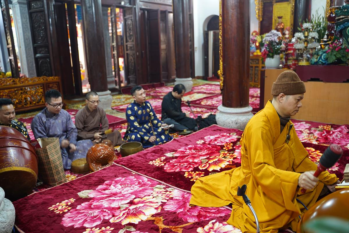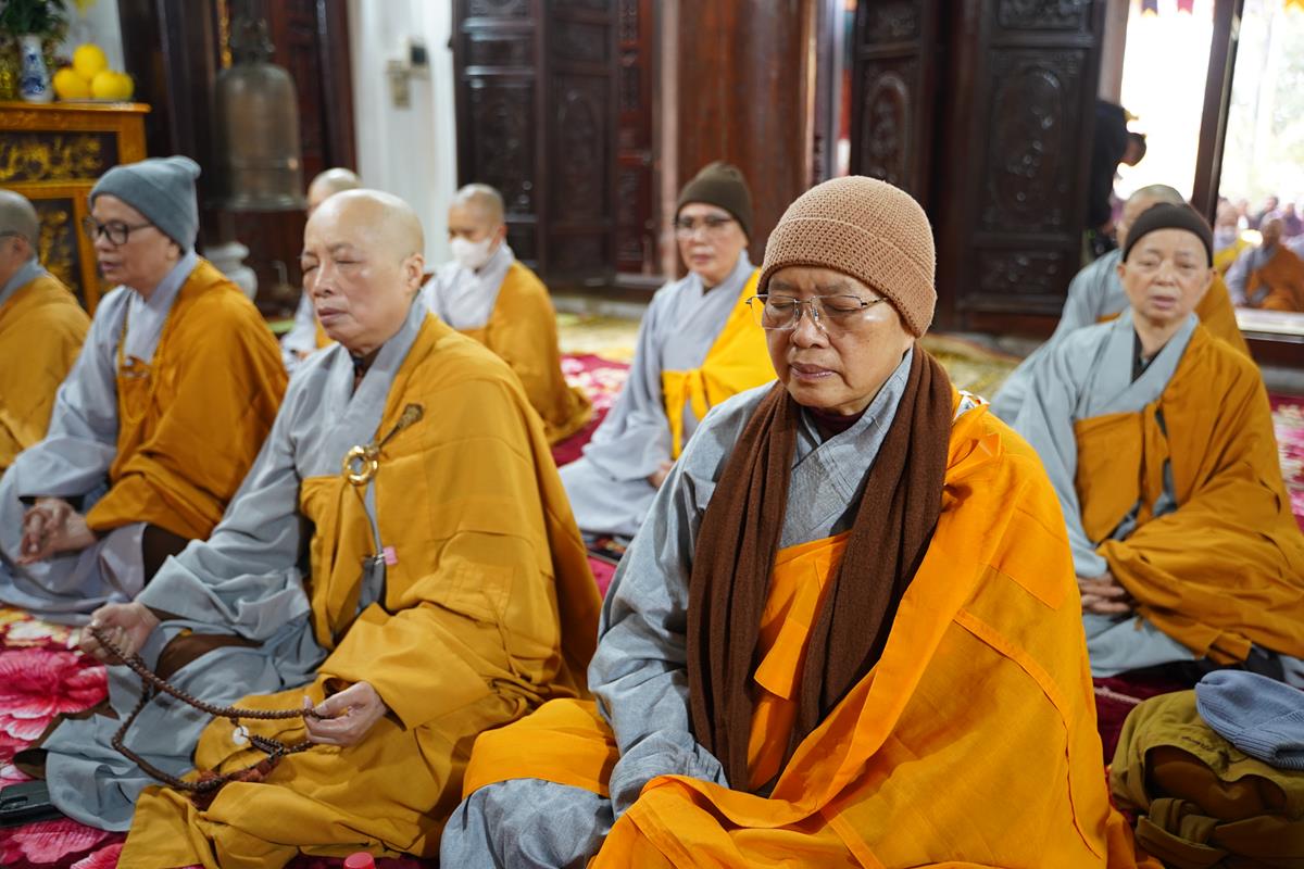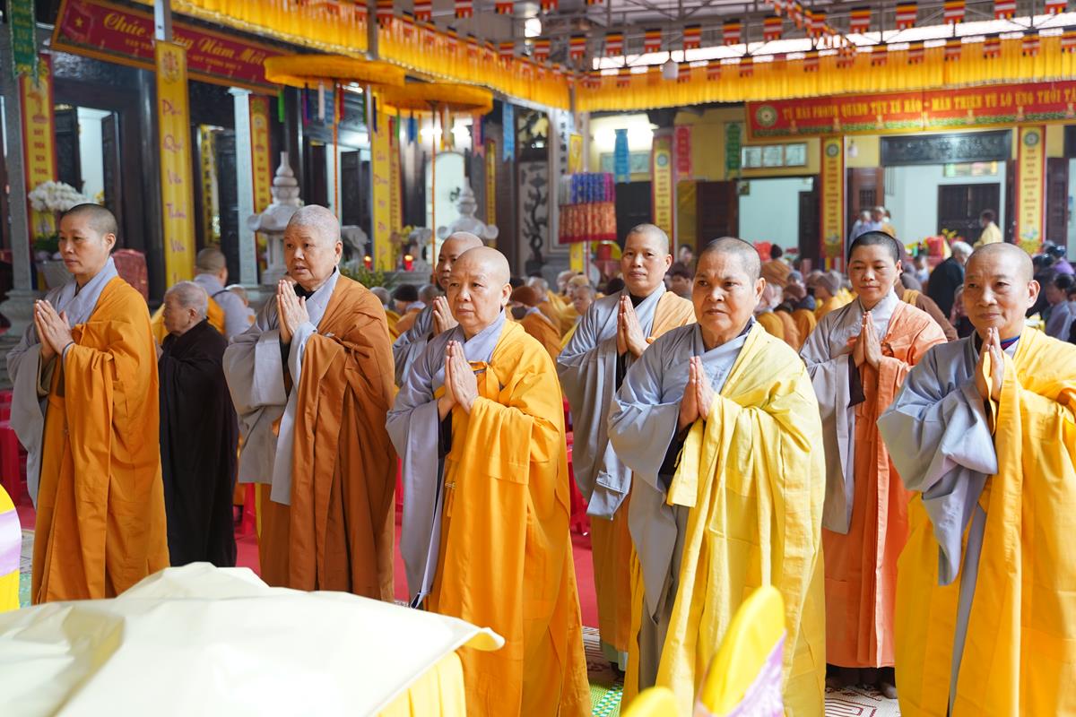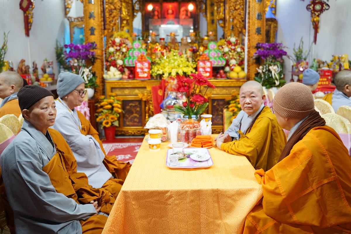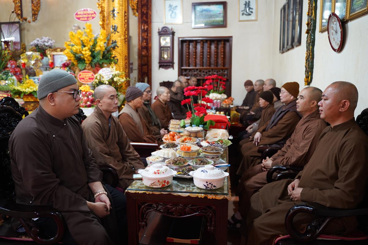 Tại nơi chính điện và Tổ đường, chư Tôn đức đã thực hiện nghi thức cúng Phật, cúng giác linh.