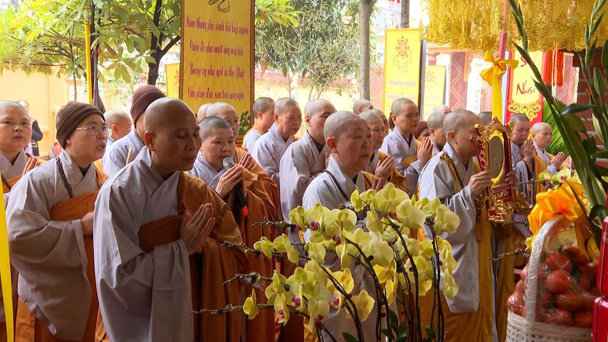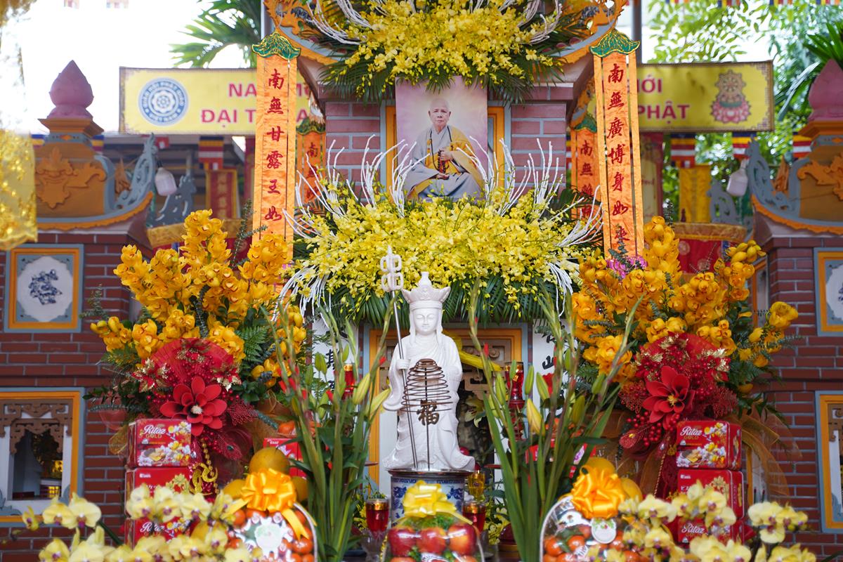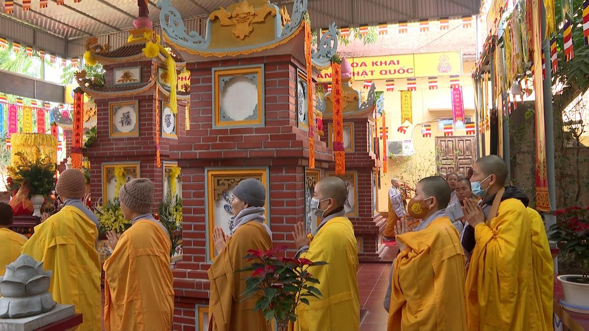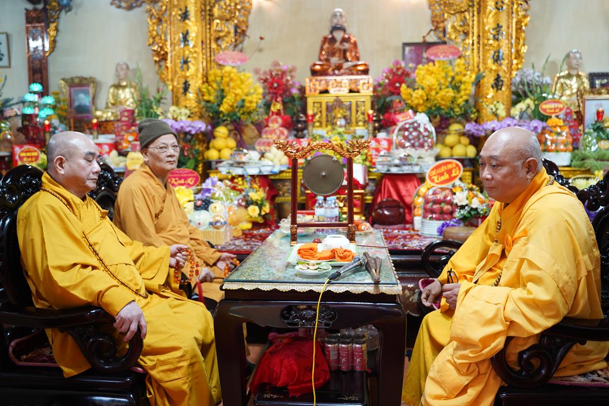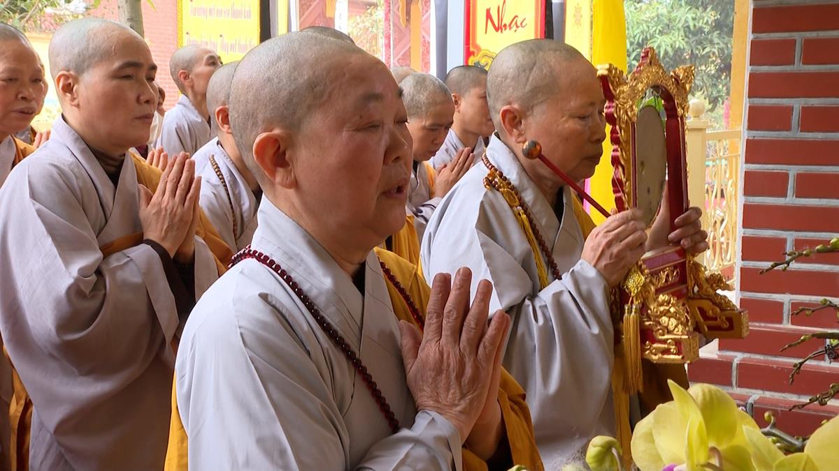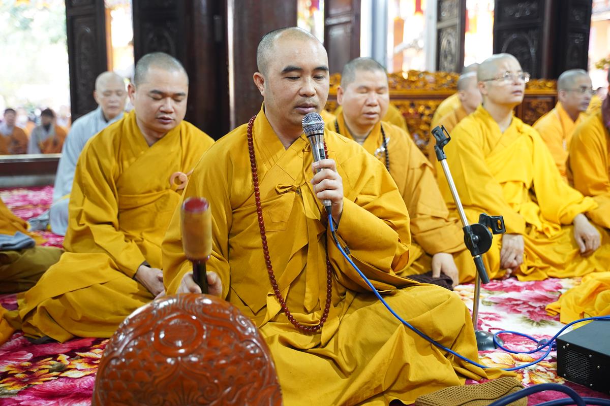 Tại nơi chính điện và Tổ đường, chư Tôn đức đã thực hiện nghi thức cúng Phật, cúng giác linh.