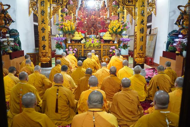 Sau đó, môn đồ pháp quyến tác bạch cầu thỉnh chư Tôn đức Tăng Ni quang lâm nơi Đại hùng bảo điện, tụng thời kinh A Di Đà cầu nguyện cho Giác linh cố Ni trưởng được cao đăng thượng phẩm, quả chứng vô sinh.