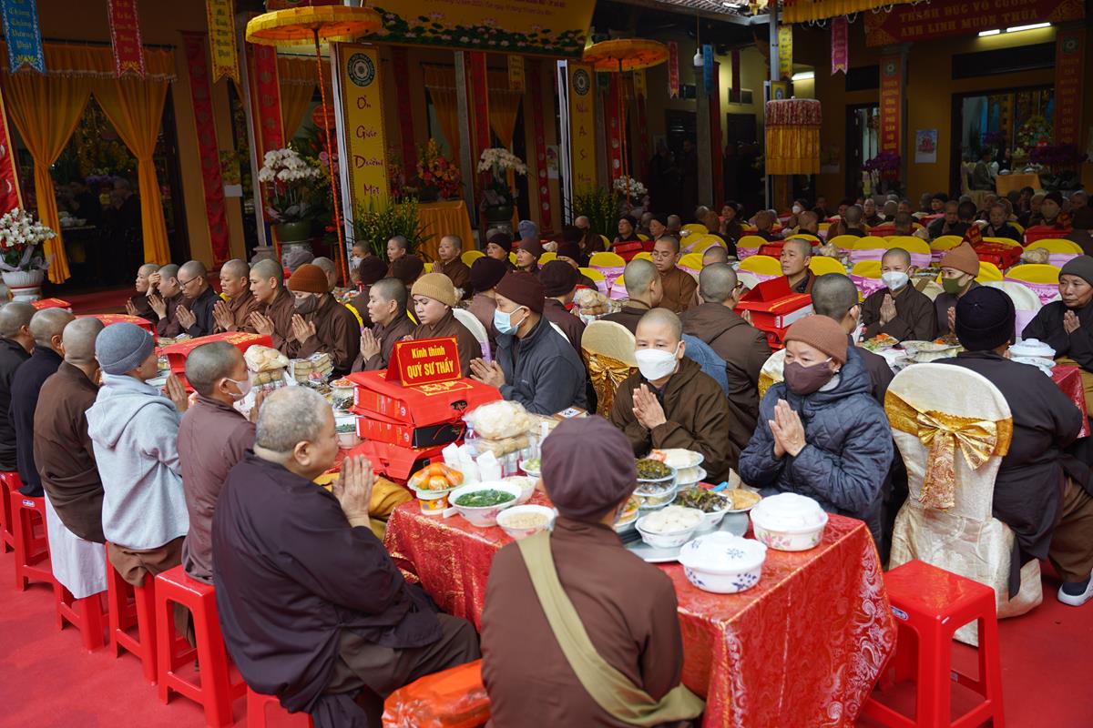 Sau phần nghi lễ, môn đồ pháp quyến thành tâm sửa soạn trai nghi thiết lễ cúng dường trai tăng để trọn niềm hiếu đạo.