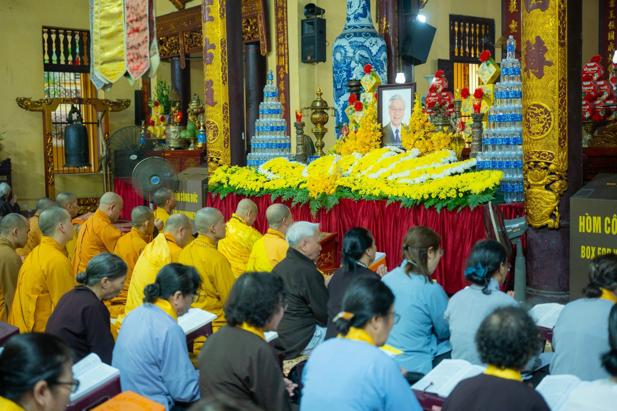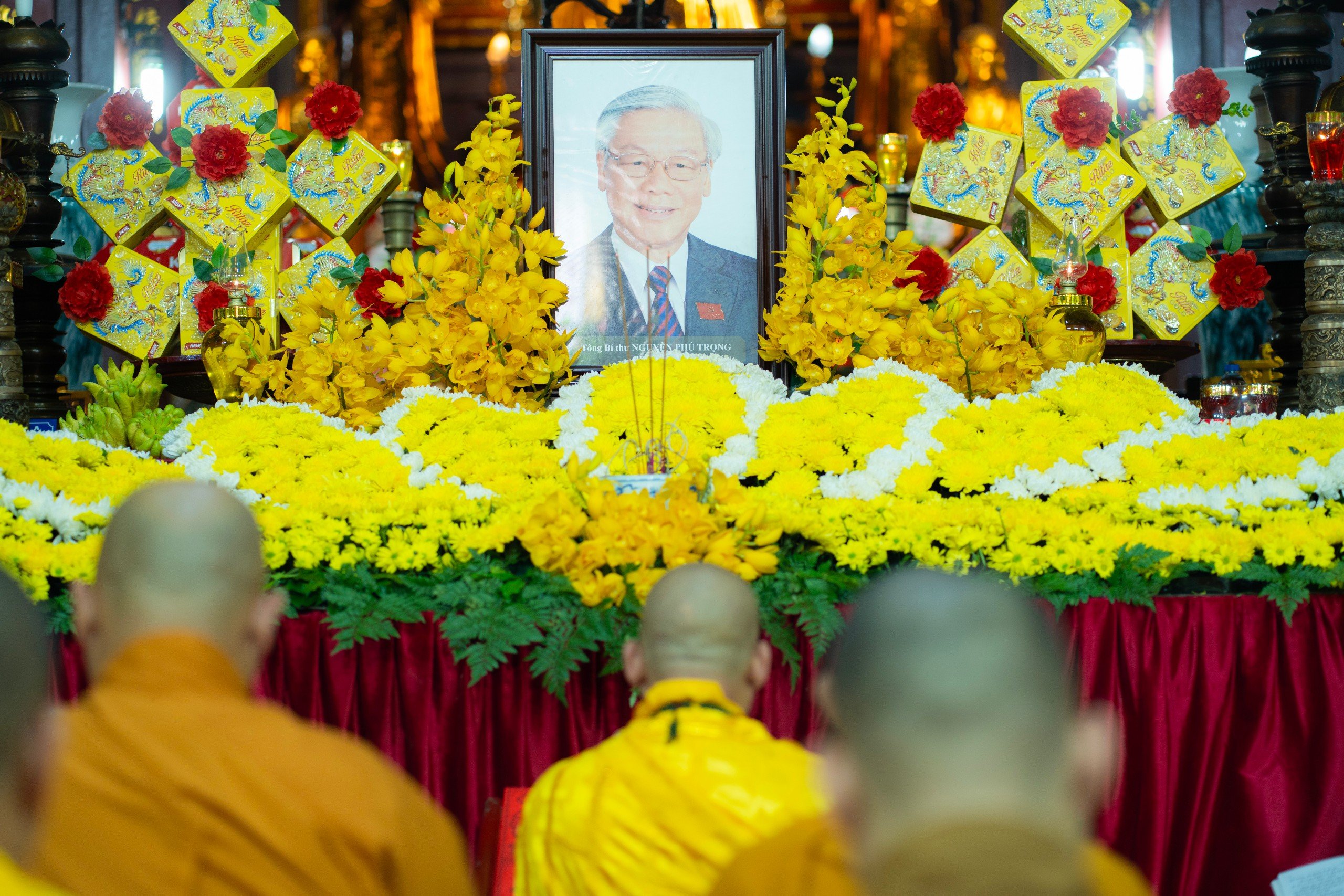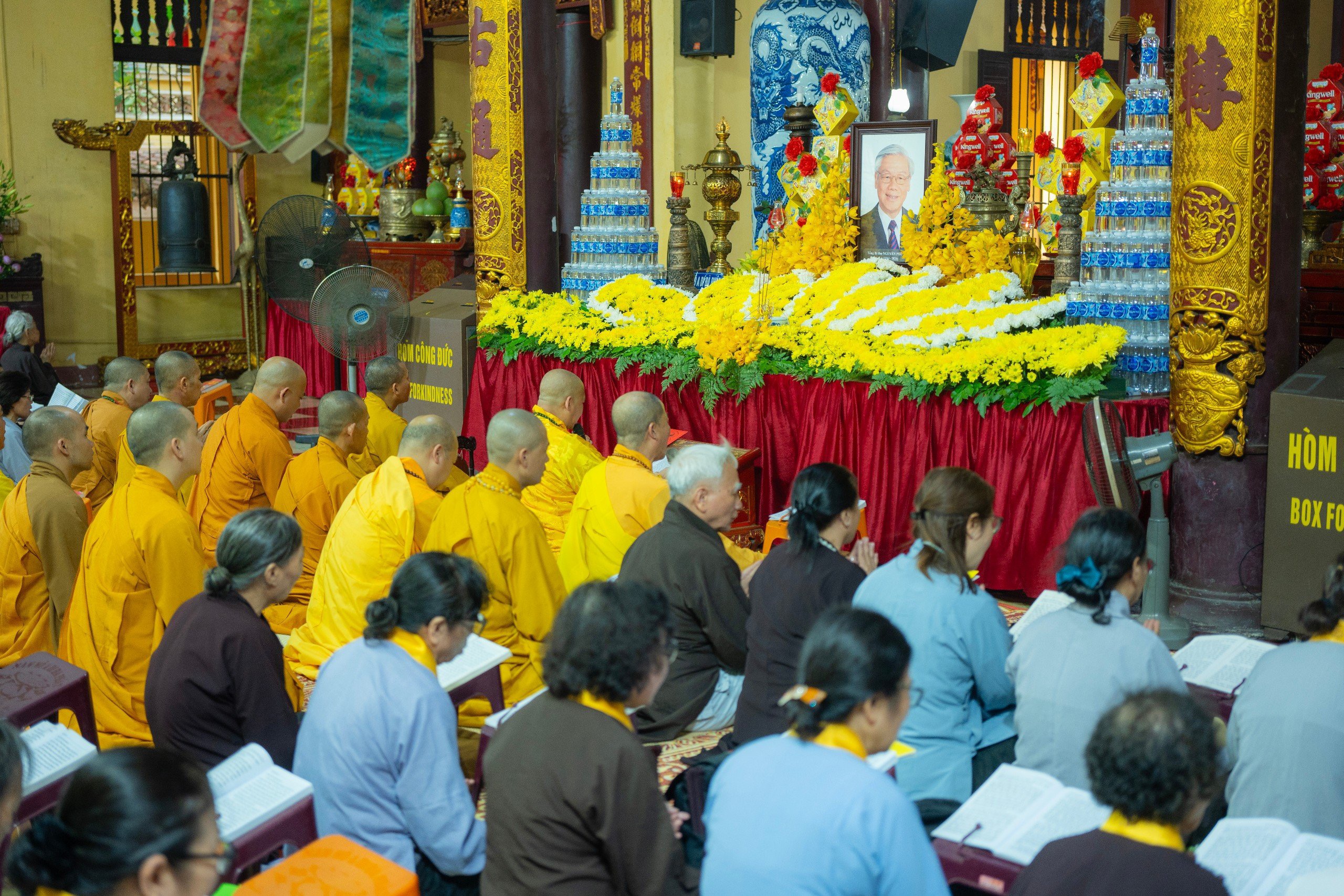 Đúng 7h00 ngày 25/7/2024 (20/6/Giáp Thìn) tại Trụ sở TƯ GHPGVN chùa Quán Sứ, Chư Tôn đức thỉnh ba hồi chuông, trống Bát nhã, đông đảo Phật tử tụng kinh hồi hướng cầu siêu theo nghi thức truyền thống Phật giáo nhất tâm cầu nguyện hồi hướng và thành kính tưởng niệm Cố Tổng Bí thư Nguyễn Phú Trọng