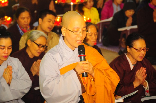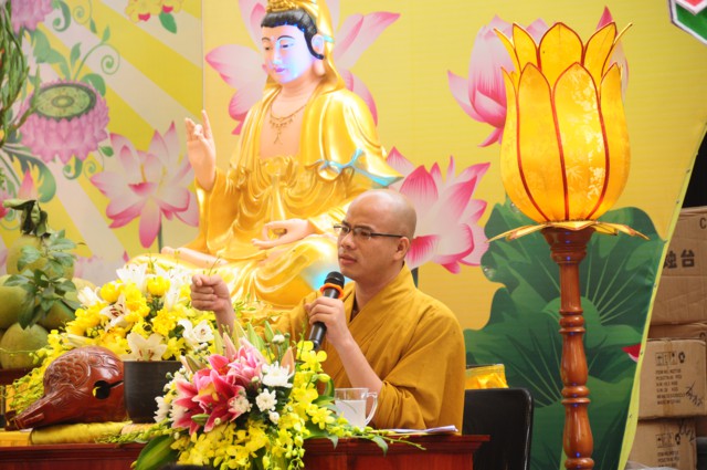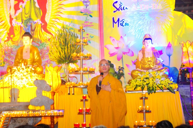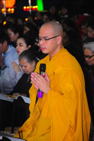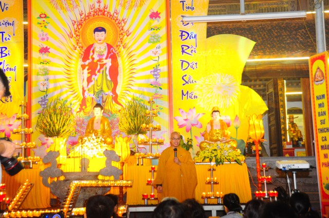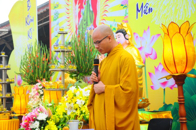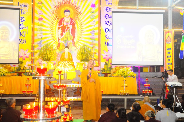 Trước khi pháp hội niệm Phật được diễn ra, đại đức Thích Quảng Hiếu – Trưởng BTC đại lễ đã giảng cho quý Phật tử một thời Pháp nói về lịch sử Đức Phật A Di Đà, ý nghĩa của ngày lễ vía Phật A Di Đà, 48 lời phát nguyện của Ngài và cảnh giới Tây Phương Cực Lạc, nơi mà Ngài hiện đang làm giáo chủ, để từ đó các Phật tử lấy đó làm hành trang, làm động lực cho quá trình tu học tìm cầu giác ngộ, giải thoát của mình. Qua thời pháp hơn 1 giờ đồng hồ, các Phật tử đã phần nào hiểu được lịch sử của Ngài cũng như những công hạnh của Ngài và thế giới của Ngài, nơi mà các Phật tử tu học theo pháp môn Tịnh Độ đang phát nguyện được sinh về cảnh giới đó với một niềm tin sâu sắc, thành kính nhất.
