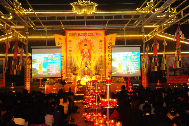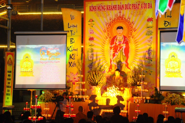 Qua đó chúng ta thấy được rằng: Đức Phật A Di Ðà chính là tiền thân là Thái tử Kiều Thi Ca, bỏ ngôi sang, xuất gia tu chứng thành quả Phật là A Di Ðà. Vì lòng thương tưởng chúng sinh nên Ngài đã phát ra 48 lời đại nguyện để cứu độ muôn loài. Để tưởng nhớ và tri ân những công hạnh cao cả đó của Ngài, tối ngày 10/12/2016 và sáng ngày 11/12/2016, Đại đức Thích Quảng Hiếu – Trưởng BTC đại lễ kính mừng khánh đản đức Phật A Di Đà chùa Tân Hải đã cùng gần 3000 lượt Phật tử, nhân dân địa phương, du khách gần xa tổ chức các hoạt động Phật sự ý nghĩa nhằm kỷ niệm ngày khánh đản của Ngài.