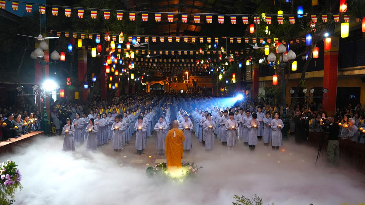 Sau nghi thức dâng hương là giây phút trong đêm lễ được hàng Phật tử tứ chúng đón chờ nhất, khi Trưởng lão Hòa thượng Thích Quang Nhuận đón nhận ánh sáng trí tuệ từ bàn Phật, và truyền sang cho chư tôn thiền đức chứng minh như sự sẻ chia chính pháp rạng ngời, truyền trao tinh thần trí tuệ, từ bi, thể hiện mạnh mẽ sự lưu truyền, hoằng dương chính pháp nơi những người con của Đức Như Lai.
