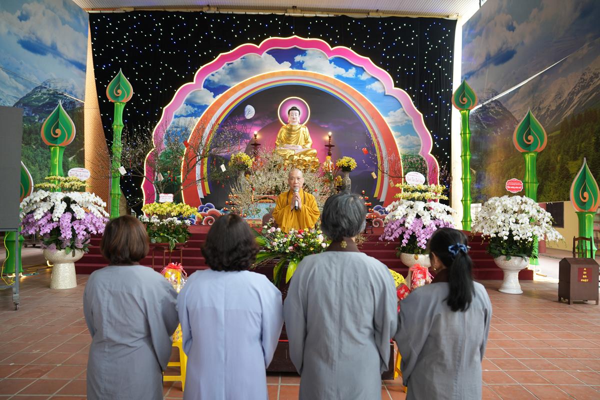 Trước tôn tượng Đức Phật Thích Ca Mâu Ni uy nghiêm nơi lễ đài, đại chúng được lắng nghe những lời chỉ dạy thấm đẫm từ bi và trí tuệ của Hòa thượng trong năm mới, đồng thời được trao tặng “lì xì pháp bảo” – những lời Phật dạy trong Kinh Pháp Cú và Kinh Phúc Đức, như ngọn đèn chính pháp soi sáng bước đường tu học suốt một năm dài.