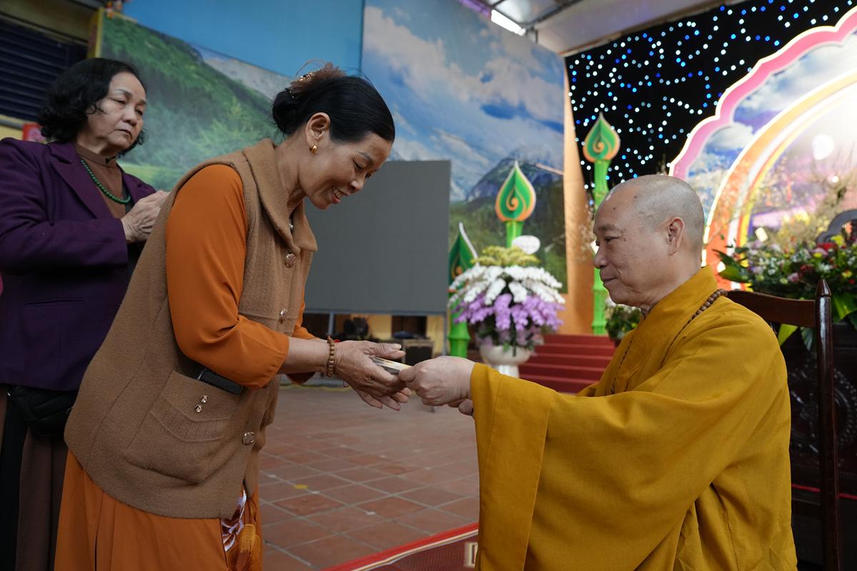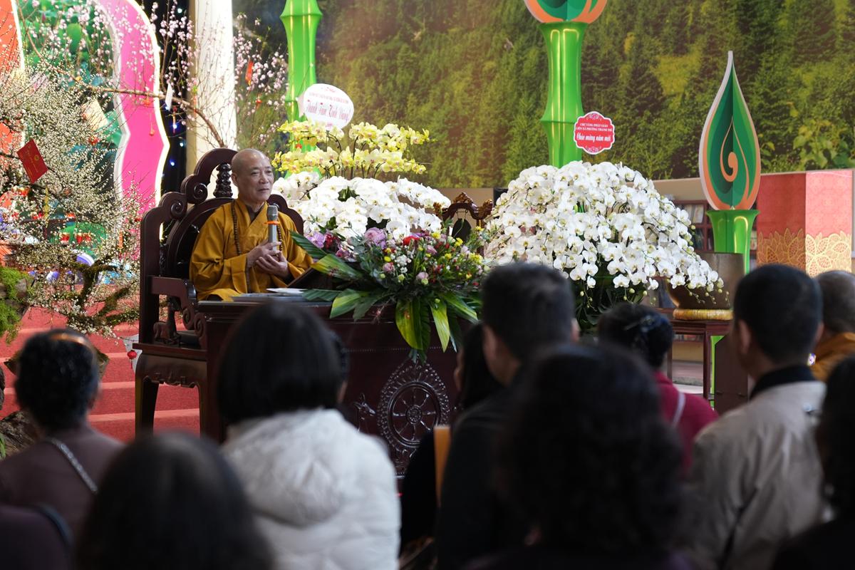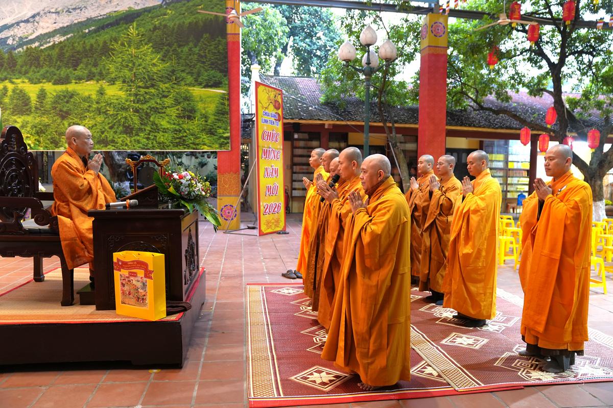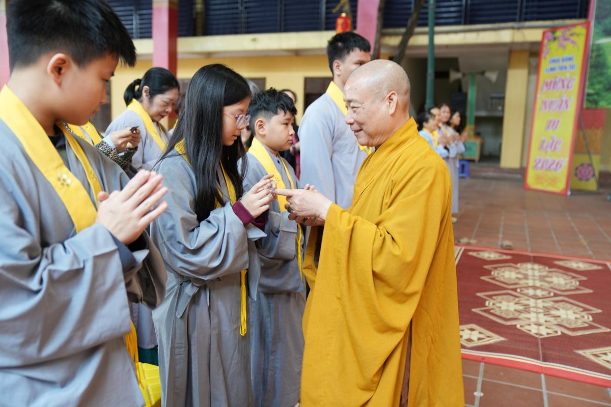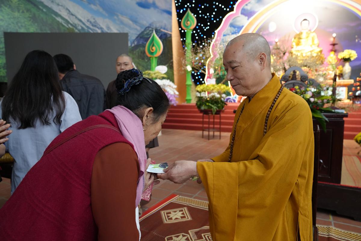 Trước tôn tượng Đức Phật Thích Ca Mâu Ni uy nghiêm nơi lễ đài, đại chúng được lắng nghe những lời chỉ dạy thấm đẫm từ bi và trí tuệ của Hòa thượng trong năm mới, đồng thời được trao tặng “lì xì pháp bảo” – những lời Phật dạy trong Kinh Pháp Cú và Kinh Phúc Đức, như ngọn đèn chính pháp soi sáng bước đường tu học suốt một năm dài.