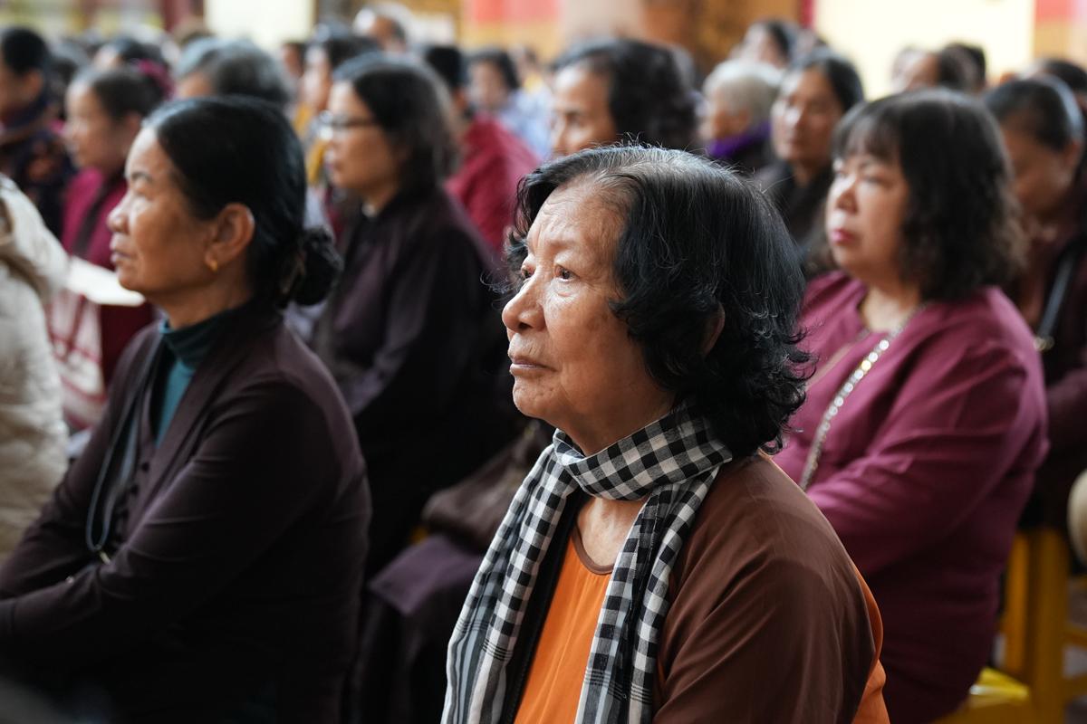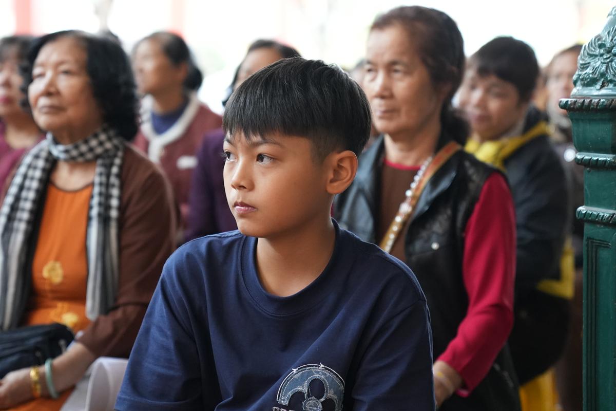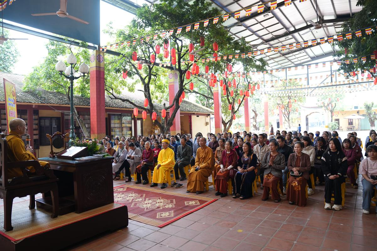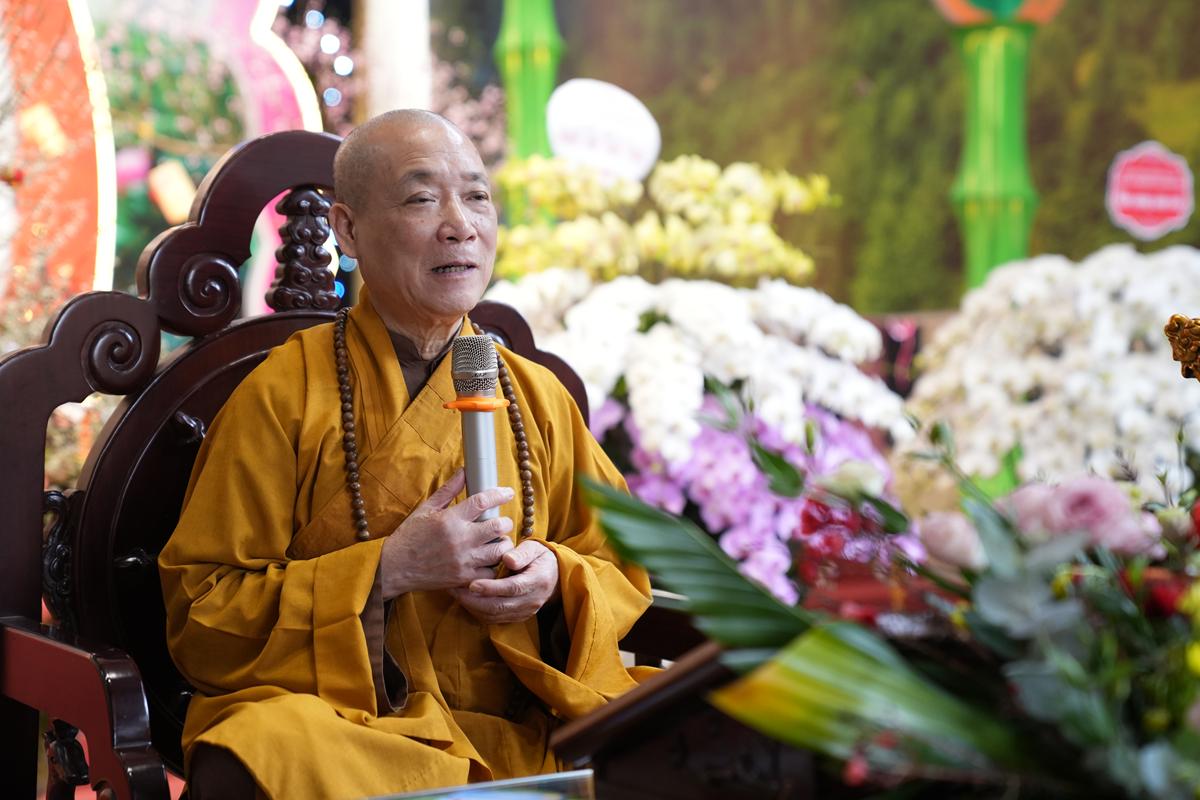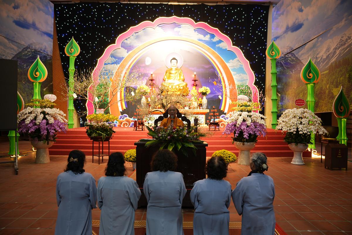 Trước tôn tượng Đức Phật Thích Ca Mâu Ni uy nghiêm nơi lễ đài, đại chúng được lắng nghe những lời chỉ dạy thấm đẫm từ bi và trí tuệ của Hòa thượng trong năm mới, đồng thời được trao tặng “lì xì pháp bảo” – những lời Phật dạy trong Kinh Pháp Cú và Kinh Phúc Đức, như ngọn đèn chính pháp soi sáng bước đường tu học suốt một năm dài.