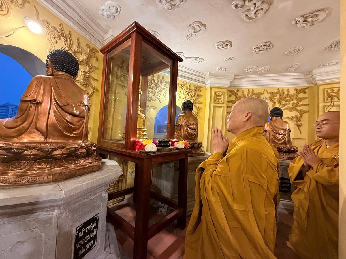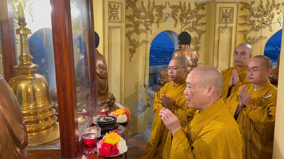 Sáng ngày mùng 2 Tết, trong tinh thần tri ân tới Bậc Đại Đạo Sư, Thầy và trò chùa Bằng đã lên tầng 13 của Bảo Tháp Báo Ân để đỉnh lễ Xá lợi Phật bằng lòng chí thành chí kính dâng lên cúng dàng Tam Bảo. Sau đó, Hòa thượng cùng chư Tăng tĩnh tọa ngồi thiền, nhất tâm cầu nguyện quốc thái dân an, Phật pháp trường tồn, chúng sinh an lạc.