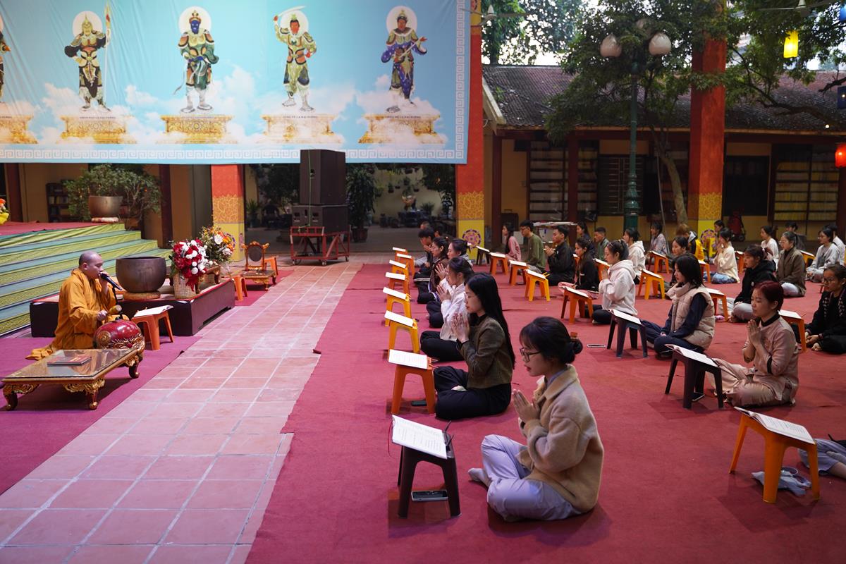 Sau thời khóa tụng kinh, Hòa thượng trụ trì đã có lời chào ngày mới và năm mới an lạc tới toàn thể khóa sinh. Đồng thời, Hòa thượng cũng đã giảng giải khái quát về ý nghĩa của bộ Kinh Dược Sư mà các bạn vừa trì tụng, nhằm giúp các khóa sinh hiểu rõ về thông điệp mà quý Thầy muốn gửi gắm qua chương trình tu học, với mong muốn mang lại sự an lành cho các khóa sinh.