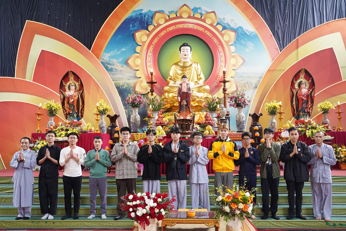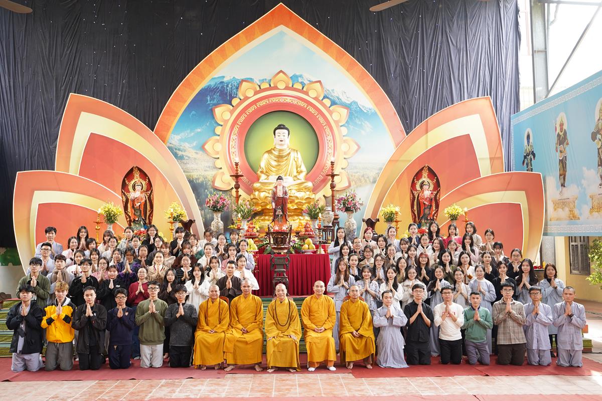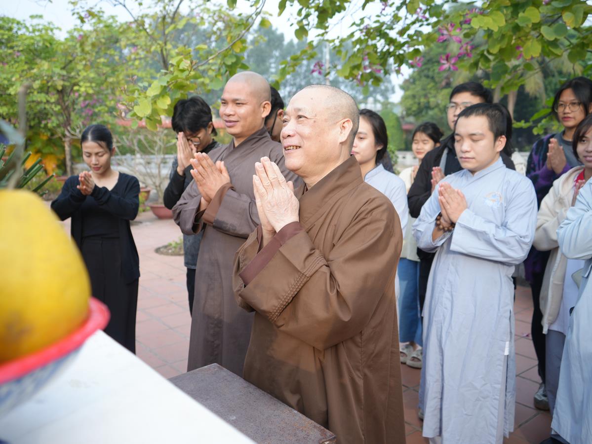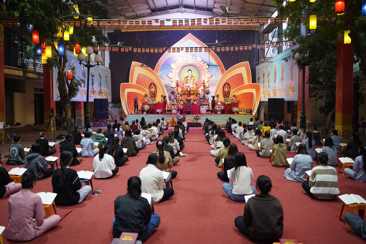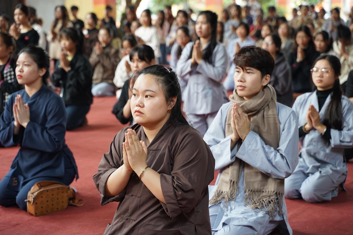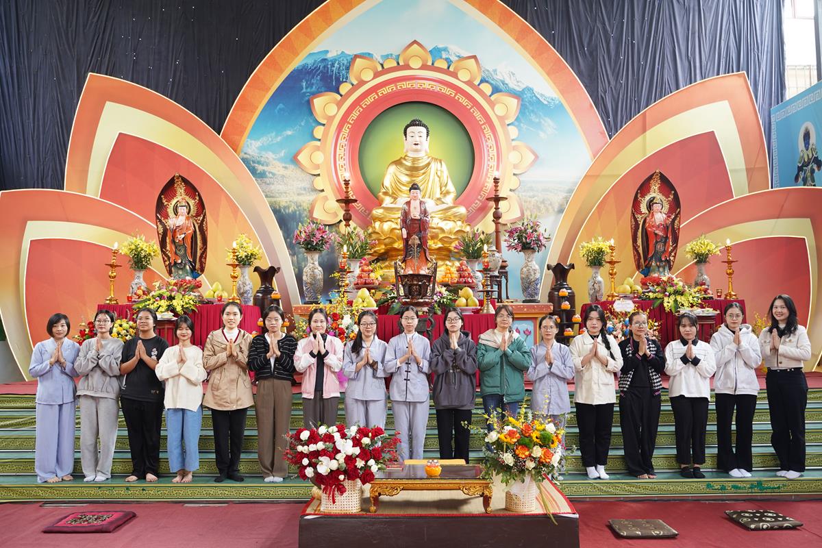 Buổi trưa, các khóa sinh đã cùng Hòa thượng trụ trì và chư Tôn đức Tăng thực hiện nghi thức dâng cơm dâng trà cúng Tam Bảo, Tổ tiên, sau đó dùng bữa cơm chay ấm cúng, mở đầu một năm mới viên mãn, bình yên. Trước khi các bạn trở về với gia đình, với cuộc sống bộn bề công việc và học tập, Hòa thượng trụ trì Thích Bảo Nghiêm đã có lời động viên tinh thần các bạn trẻ. Hòa thượng mong rằng các bạn khóa sinh sẽ khép lại quá khứ để mở cửa tương lai, mỗi điều chúng ta đã trải qua chính là bài học và kinh nghiệm để chúng ta vững bước ở tương lai. Vì vậy, mong các bạn hãy nỗ lực và cố gắng, vận dụng những điều đã học được ở khóa tu này để áp dụng vào cuộc sống thường ngày để cân bằng cảm xúc, không rơi vào bế tắc hay khủng hoảng tâm lý, luôn an vui và lạc quan, để kiến tạo một cuộc sống hạnh phúc. Những lời dạy quý báu của Hòa thượng đã khép lại khóa tu mừng năm mới 2024 thành tựu và tràn đầy hỷ lạc.