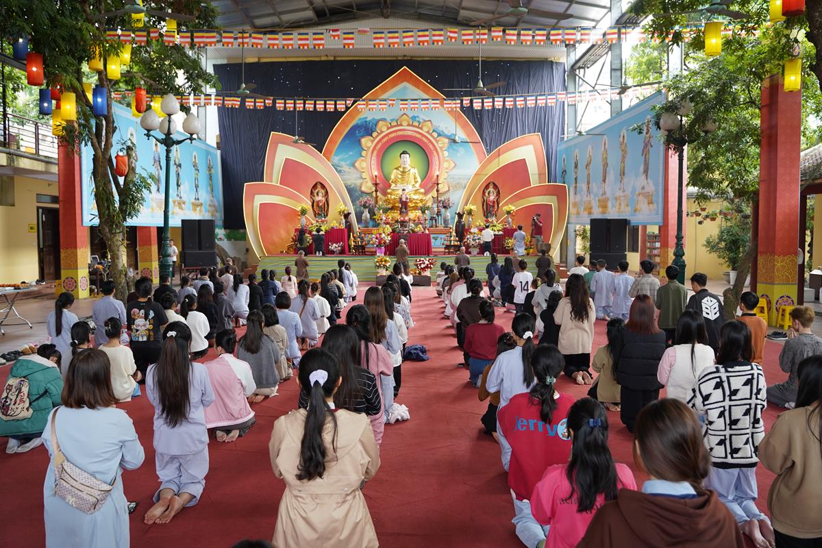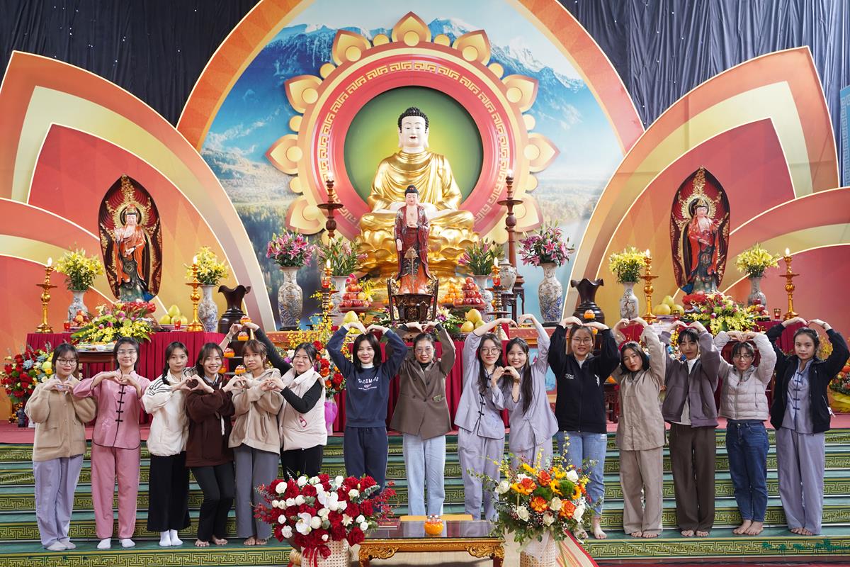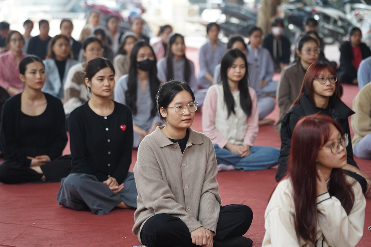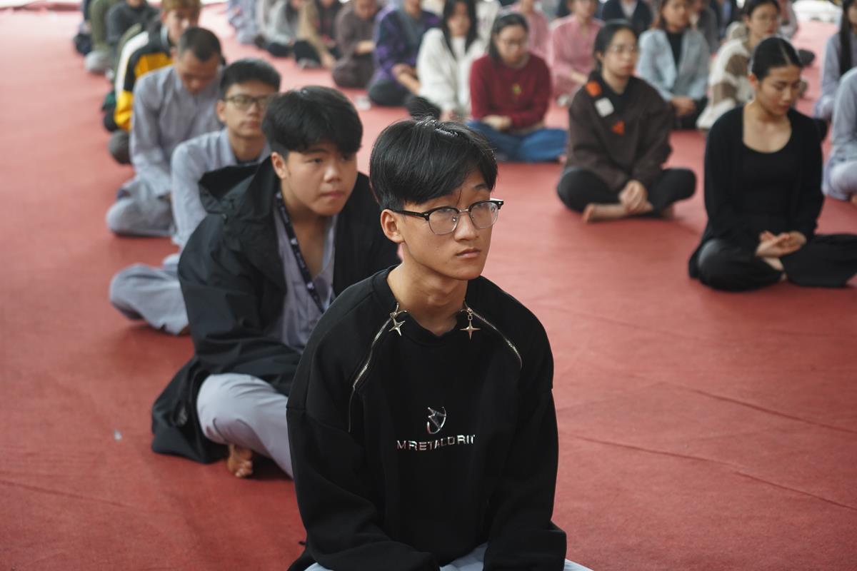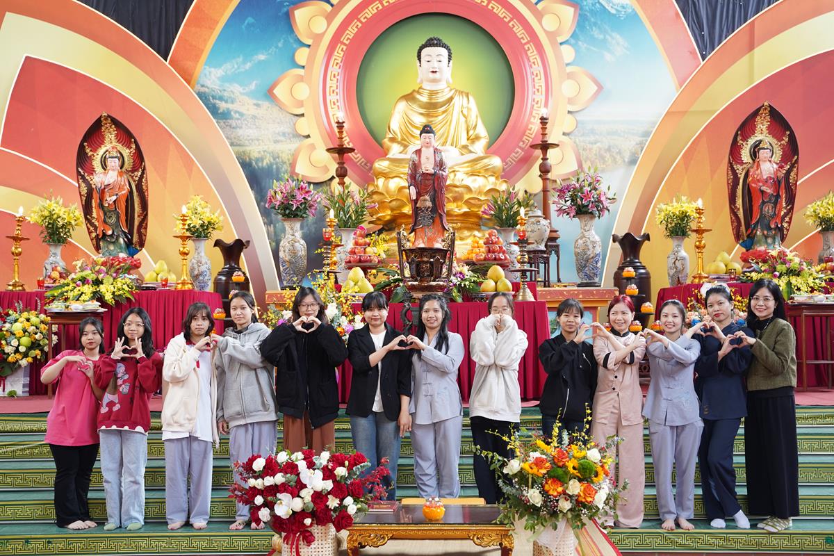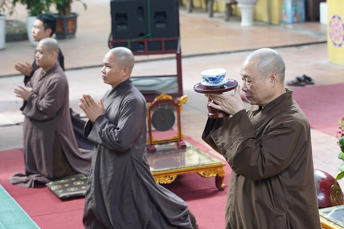 Buổi trưa, các khóa sinh đã cùng Hòa thượng trụ trì và chư Tôn đức Tăng thực hiện nghi thức dâng cơm dâng trà cúng Tam Bảo, Tổ tiên, sau đó dùng bữa cơm chay ấm cúng, mở đầu một năm mới viên mãn, bình yên. Trước khi các bạn trở về với gia đình, với cuộc sống bộn bề công việc và học tập, Hòa thượng trụ trì Thích Bảo Nghiêm đã có lời động viên tinh thần các bạn trẻ. Hòa thượng mong rằng các bạn khóa sinh sẽ khép lại quá khứ để mở cửa tương lai, mỗi điều chúng ta đã trải qua chính là bài học và kinh nghiệm để chúng ta vững bước ở tương lai. Vì vậy, mong các bạn hãy nỗ lực và cố gắng, vận dụng những điều đã học được ở khóa tu này để áp dụng vào cuộc sống thường ngày để cân bằng cảm xúc, không rơi vào bế tắc hay khủng hoảng tâm lý, luôn an vui và lạc quan, để kiến tạo một cuộc sống hạnh phúc. Những lời dạy quý báu của Hòa thượng đã khép lại khóa tu mừng năm mới 2024 thành tựu và tràn đầy hỷ lạc.