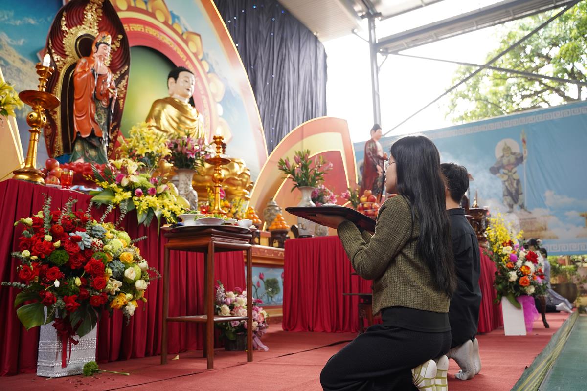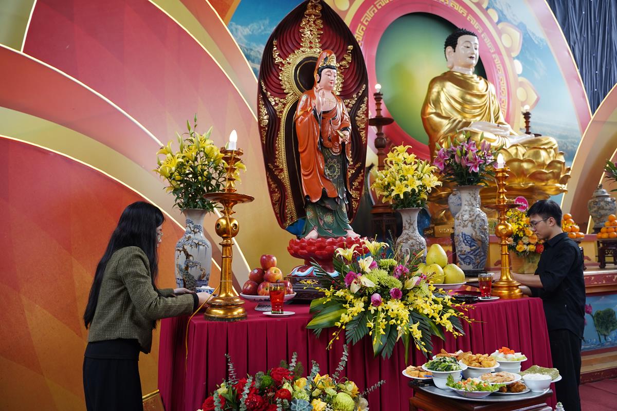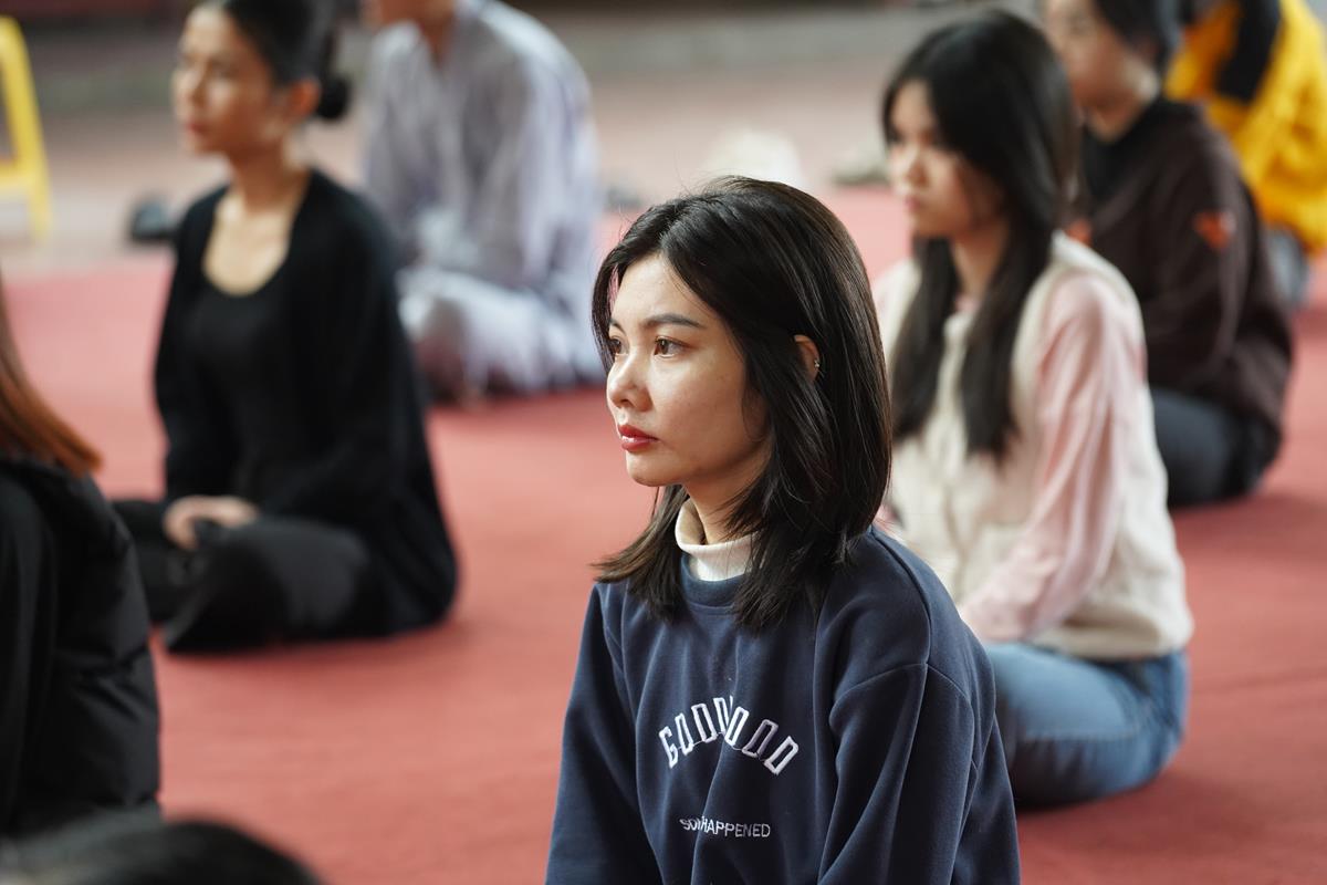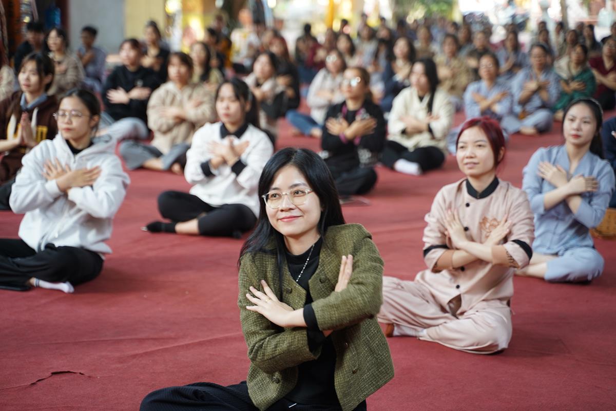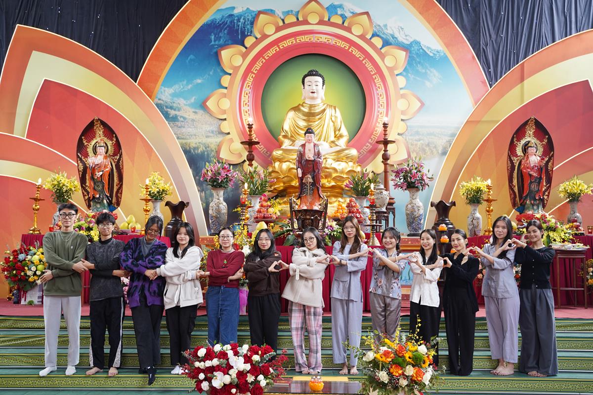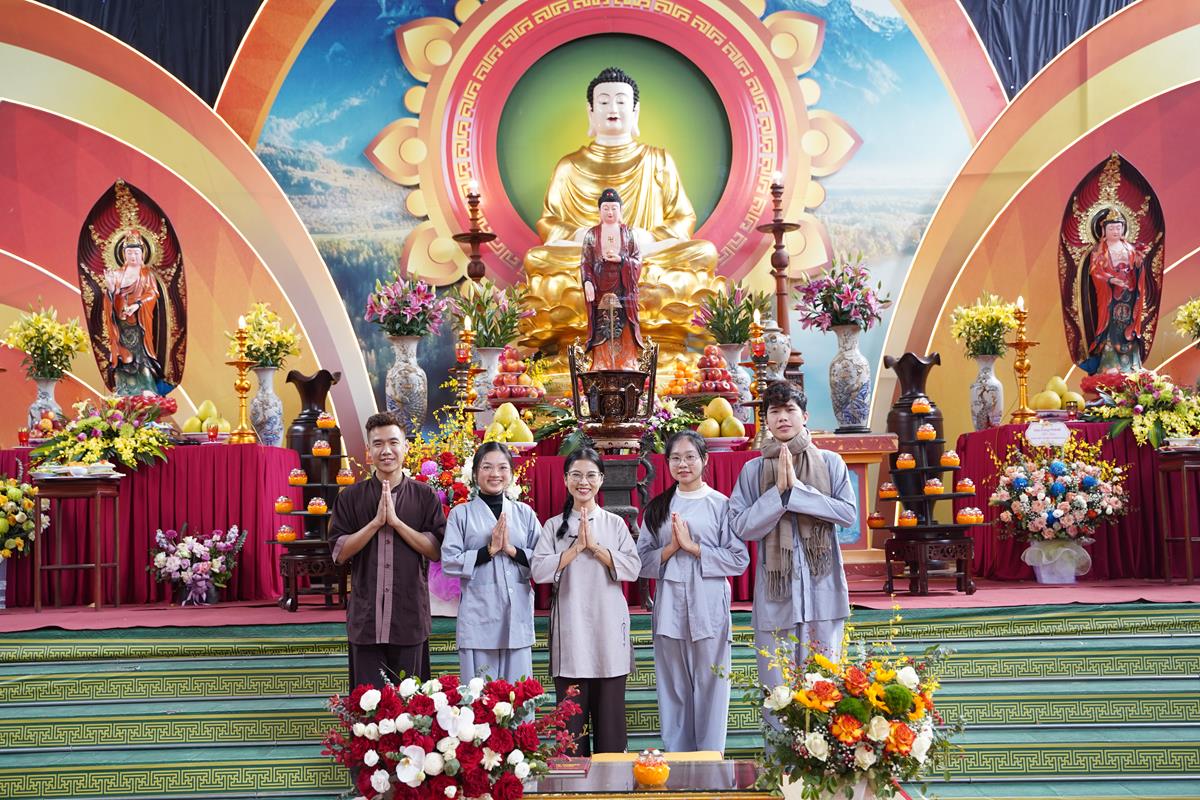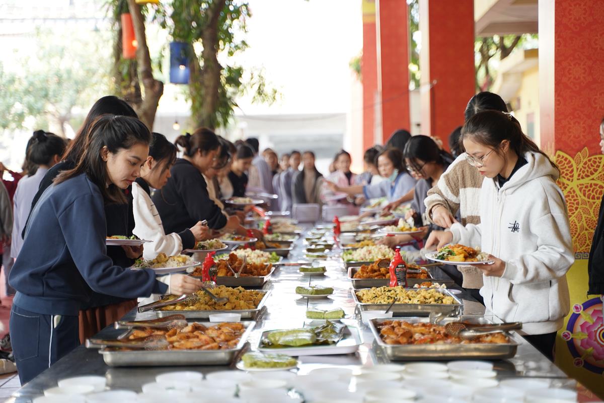 Buổi trưa, các khóa sinh đã cùng Hòa thượng trụ trì và chư Tôn đức Tăng thực hiện nghi thức dâng cơm dâng trà cúng Tam Bảo, Tổ tiên, sau đó dùng bữa cơm chay ấm cúng, mở đầu một năm mới viên mãn, bình yên. Trước khi các bạn trở về với gia đình, với cuộc sống bộn bề công việc và học tập, Hòa thượng trụ trì Thích Bảo Nghiêm đã có lời động viên tinh thần các bạn trẻ. Hòa thượng mong rằng các bạn khóa sinh sẽ khép lại quá khứ để mở cửa tương lai, mỗi điều chúng ta đã trải qua chính là bài học và kinh nghiệm để chúng ta vững bước ở tương lai. Vì vậy, mong các bạn hãy nỗ lực và cố gắng, vận dụng những điều đã học được ở khóa tu này để áp dụng vào cuộc sống thường ngày để cân bằng cảm xúc, không rơi vào bế tắc hay khủng hoảng tâm lý, luôn an vui và lạc quan, để kiến tạo một cuộc sống hạnh phúc. Những lời dạy quý báu của Hòa thượng đã khép lại khóa tu mừng năm mới 2024 thành tựu và tràn đầy hỷ lạc.