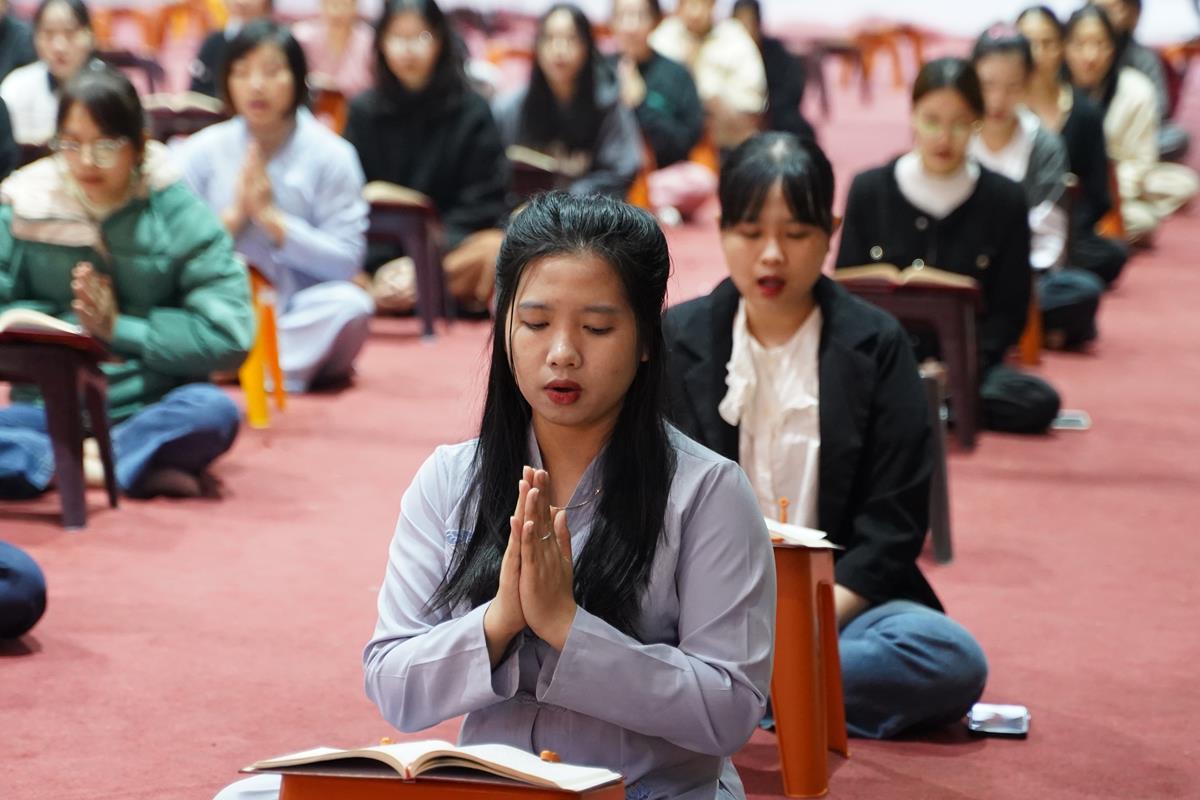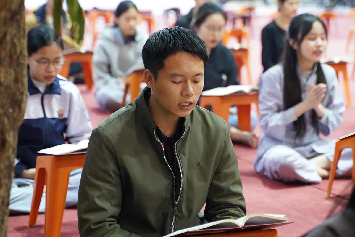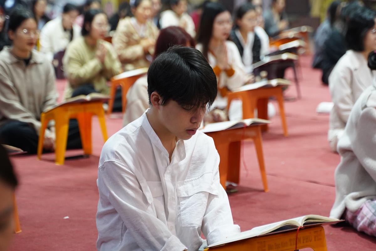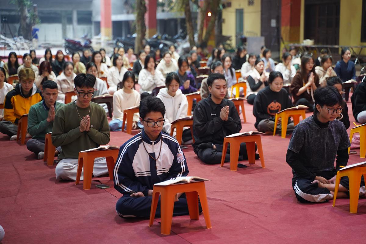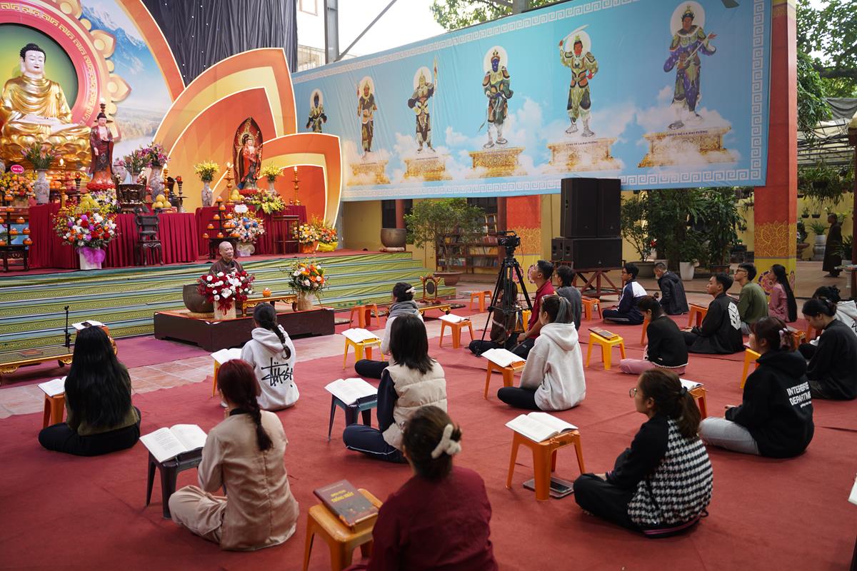 Ngay từ sáng sớm, các khóa sinh đã thức dậy vân tập về nơi lễ đường, cùng trang nghiêm tụng thời Kinh Dược Sư cầu an dưới sự hướng dẫn của quý thầy, để có một năm mới tràn đầy năng lượng của bình an, cát tường.