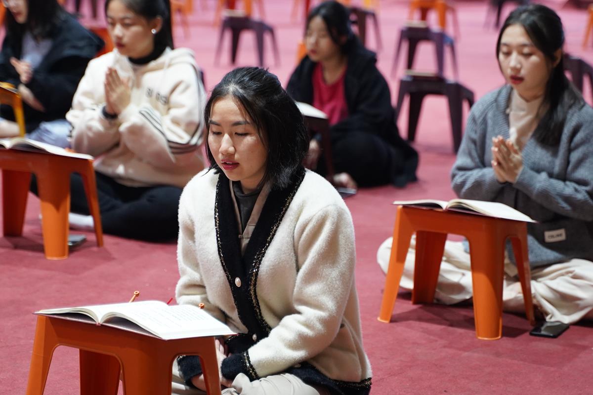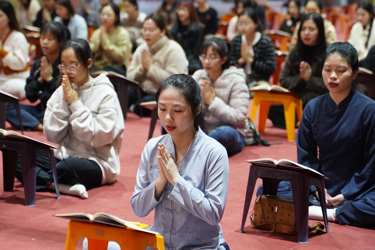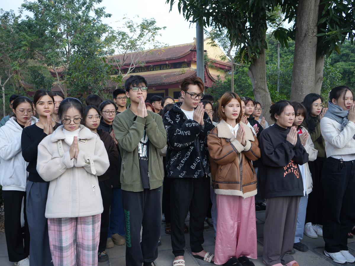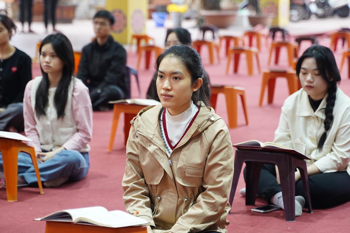 Ngay từ sáng sớm, các khóa sinh đã thức dậy vân tập về nơi lễ đường, cùng trang nghiêm tụng thời Kinh Dược Sư cầu an dưới sự hướng dẫn của quý thầy, để có một năm mới tràn đầy năng lượng của bình an, cát tường.