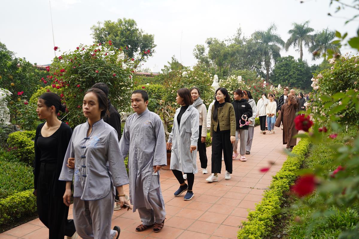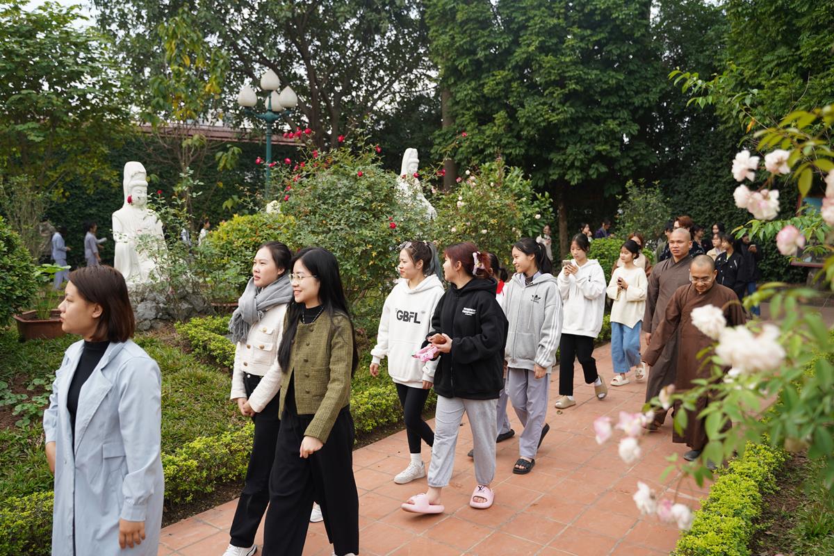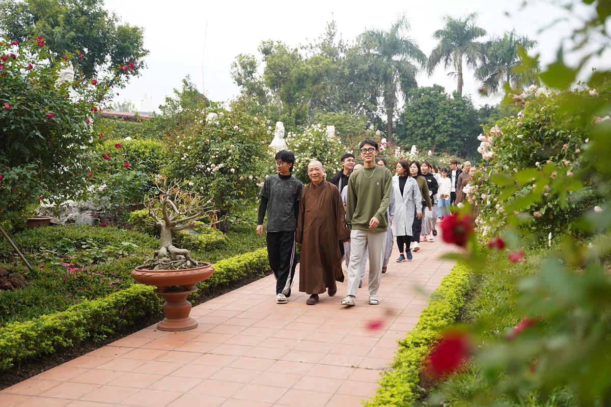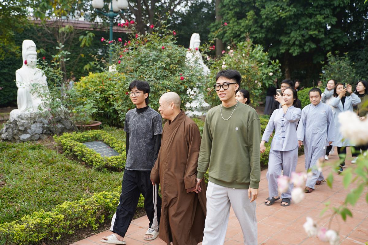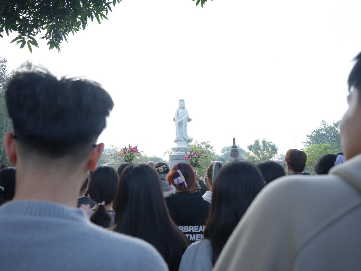 Tiếp theo, các bạn đã dùng bữa sáng, và được Hòa thượng trụ trì Thích Bảo Nghiêm dẫn đi tham quan xung quanh chùa, đỉnh lễ tôn tượng Đức Bồ Tát Quán Thế Âm cùng 32 hóa thân và 12 đại nguyện của Ngài.