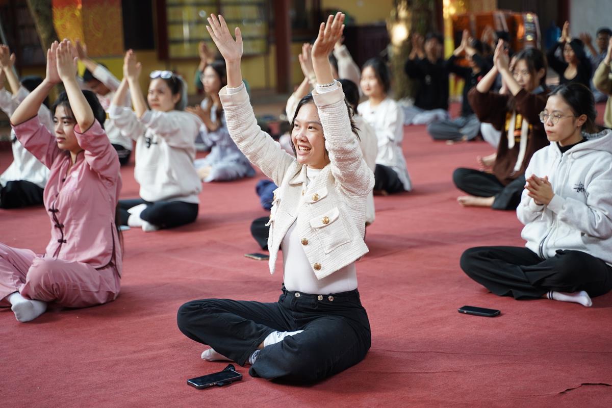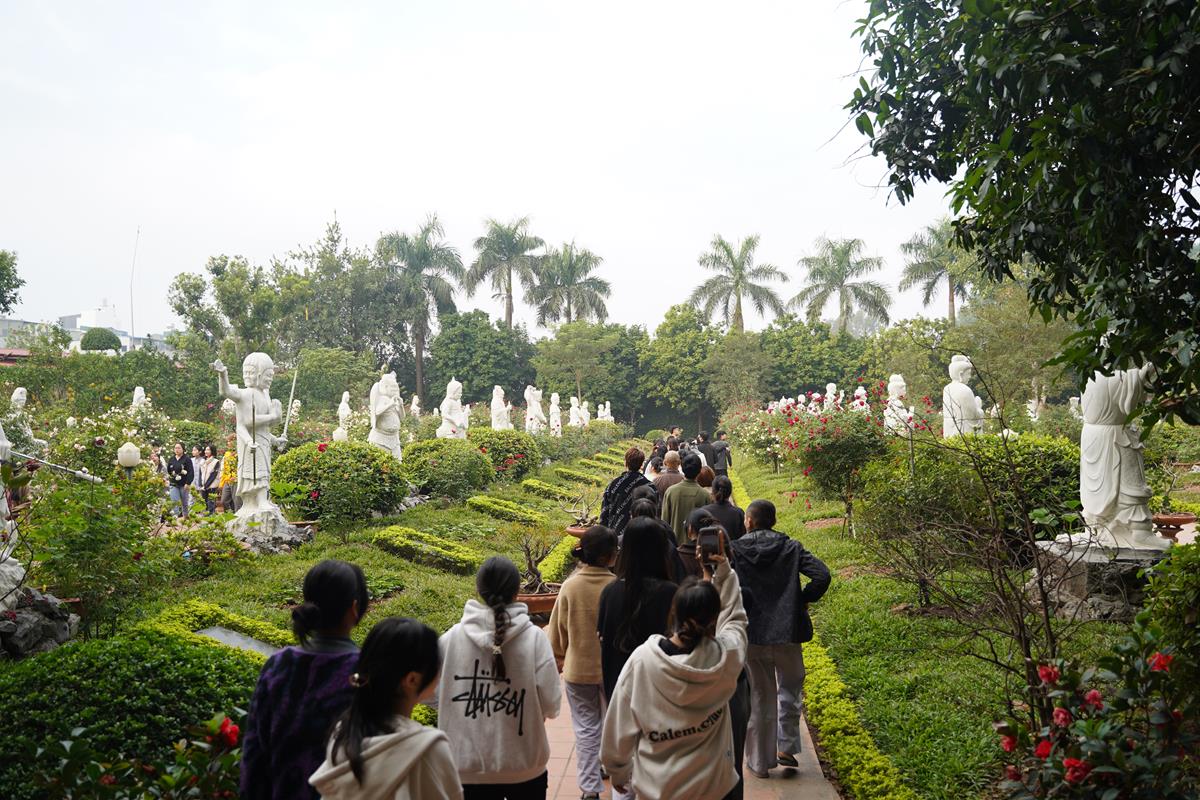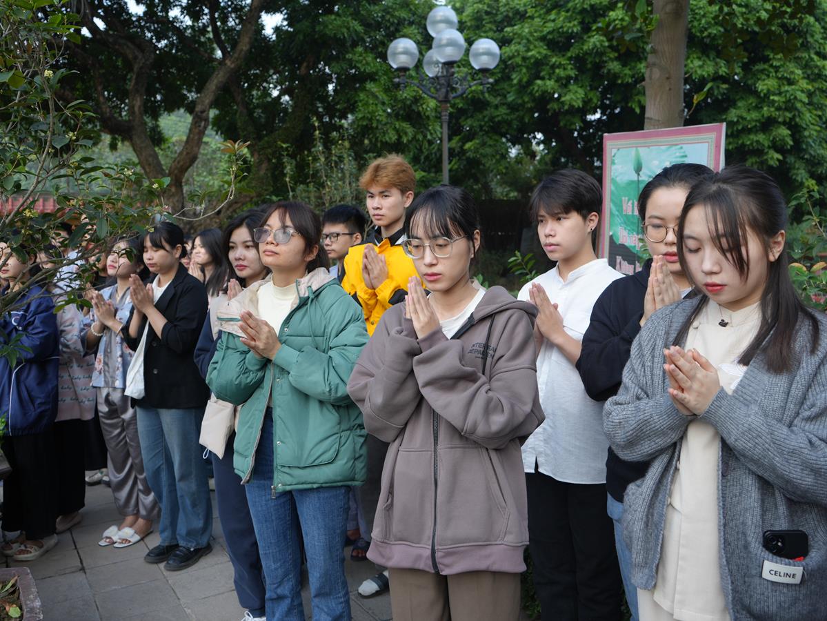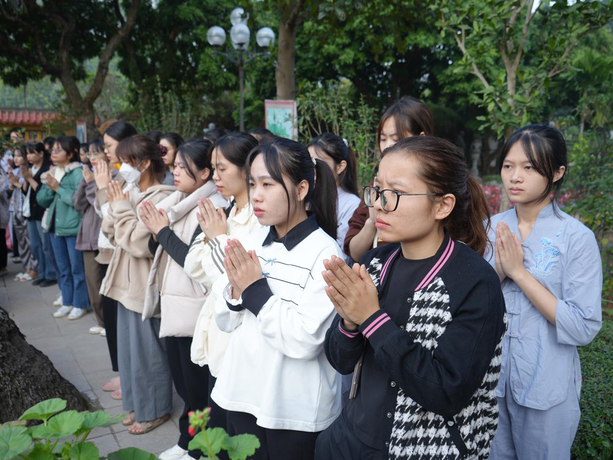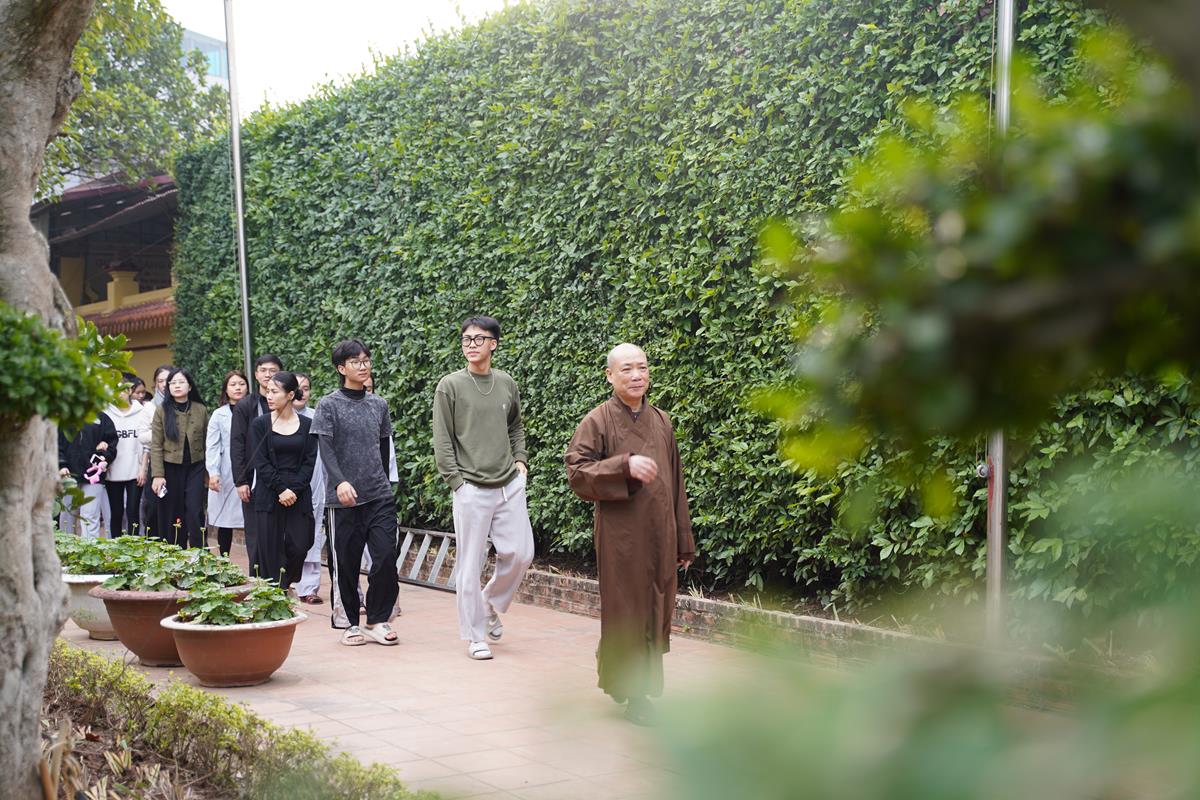 Tiếp theo, các bạn đã dùng bữa sáng, và được Hòa thượng trụ trì Thích Bảo Nghiêm dẫn đi tham quan xung quanh chùa, đỉnh lễ tôn tượng Đức Bồ Tát Quán Thế Âm cùng 32 hóa thân và 12 đại nguyện của Ngài.