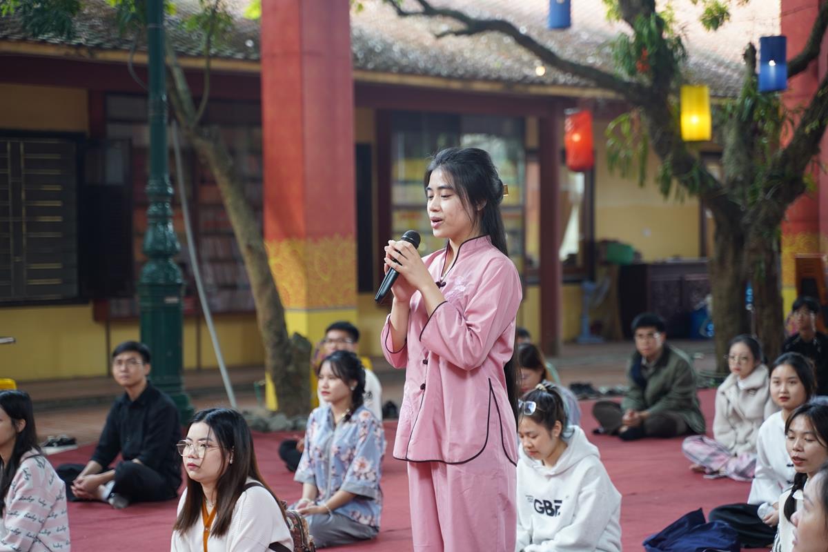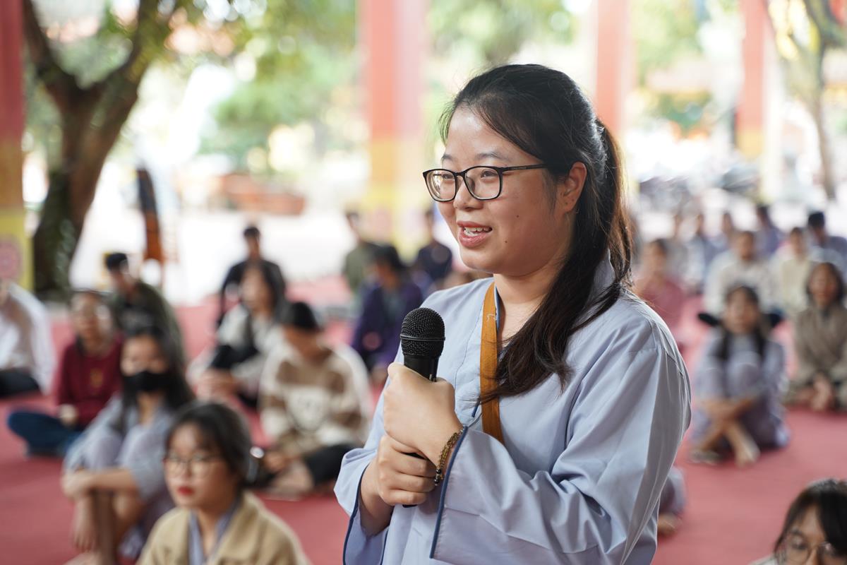 Trong buổi sáng này, các bạn đã được lắng nghe Đại đức Thích Tuệ Minh – Phó văn phòng Ban hướng dẫn Phật tử TW, Trưởng Ban hướng dẫn Phật tử GHPGVN tỉnh Nghệ An chia sẻ về “giá trị của ái ngữ” trong đời sống. Giới trẻ ngày nay đã khác với trước, trong thời buổi công nghệ ngày càng phát triển, xã hội hiện đại dẫn tới việc các bạn có thể thoải mái hơn trong lời nói, hành động. Nhưng chính vì lẽ đó, có rất nhiều thứ đã đi xa với thuần phong mỹ tục của người Việt. Đại đức muốn các bạn trẻ cần phải biết Tu – bởi tu là sửa đổi chính mình trong Thân Khẩu Ý. Sửa từ lời ăn tiếng nói, đến hành động cử chỉ sao cho dễ thương, dễ mến. Bởi lời nói chính là vũ khí sắc bén nhất. Nếu ta không chú ý, nói không suy nghĩ, nói những lời không tốt, không đẹp, sẽ gây tổn thương đến người khác, làm xấu đi hình ảnh của mình trong mắt mọi người. Lời nói có thể tác động vào chính những tư duy nhận thức bên trong chúng ta. Vì vậy, nếu bạn thường xuyên nói ái ngữ, nói những lời dễ thương hòa ái, bạn sẽ sống trong thế giới của những điều tốt đẹp, cuộc sống của bạn sẽ luôn tích cực và tràn đầy năng lượng của tình thương, hiểu biết.