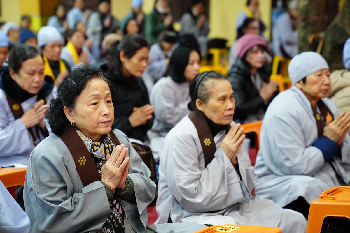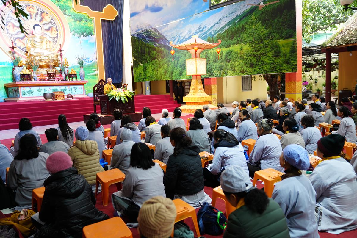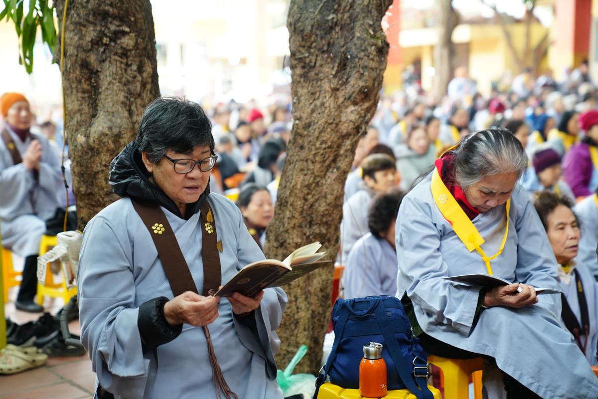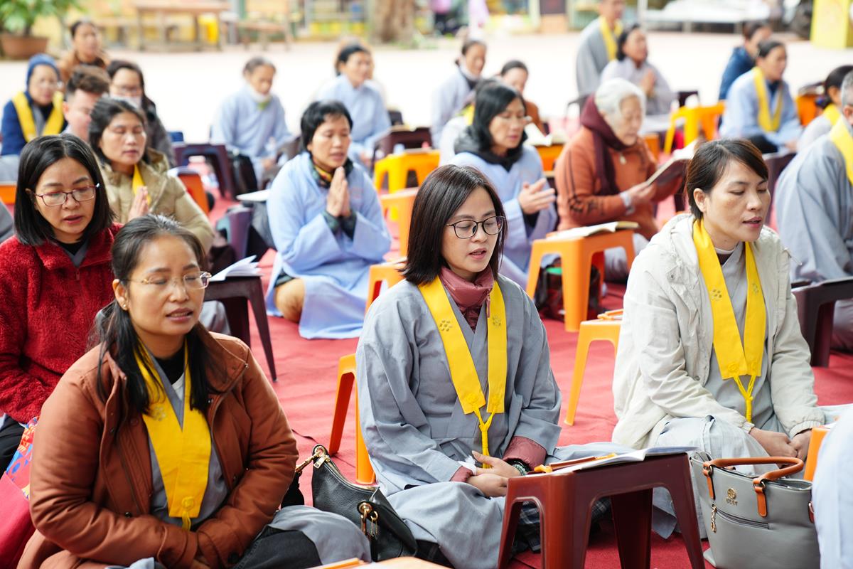 Sau thời pháp thoại ý nghĩa của Thượng tọa truyền trao, đại chúng tiếp tục trang nghiêm chắp tay búp sen đối trước Phật đài, trì tụng Kinh Bổn Môn Pháp Hoa phẩm thứ 25 và 27 Kinh Diệu Pháp Liên Hoa.