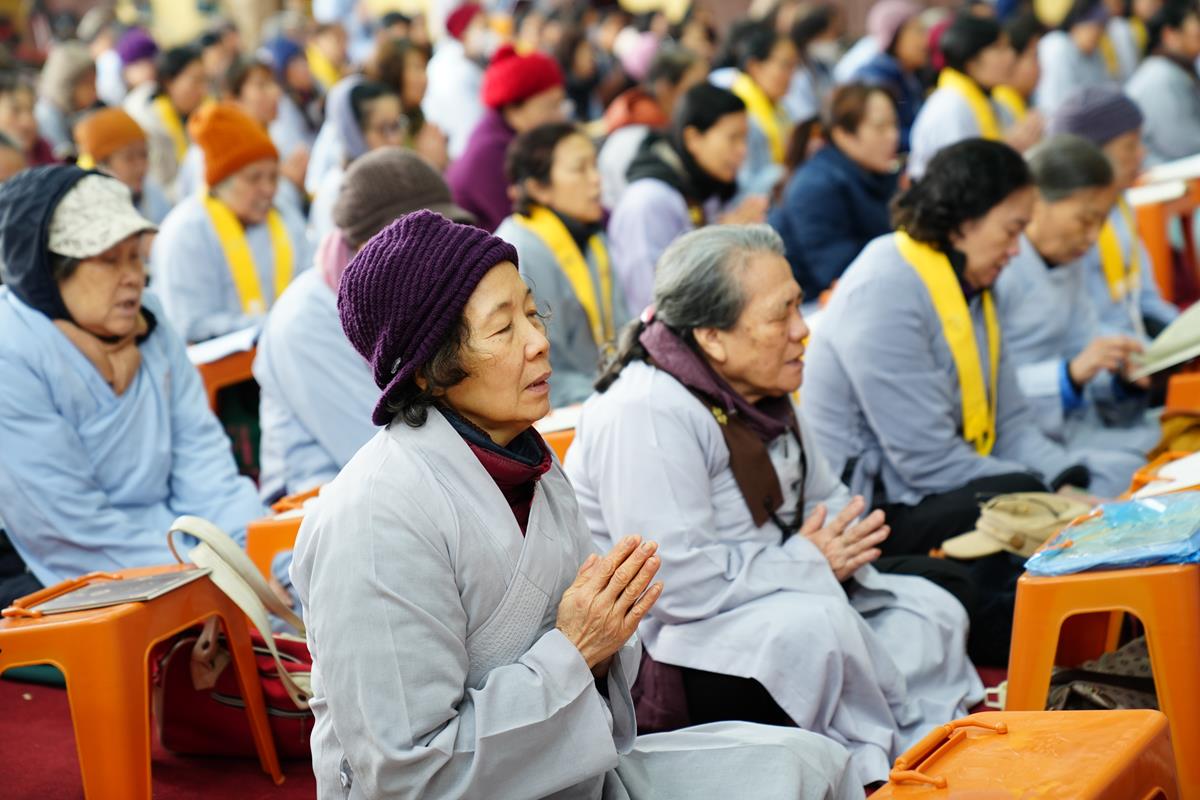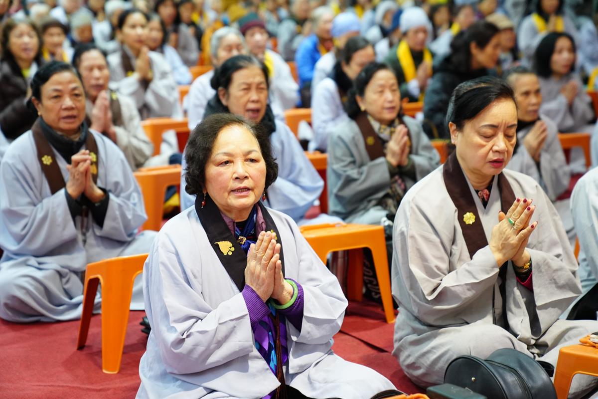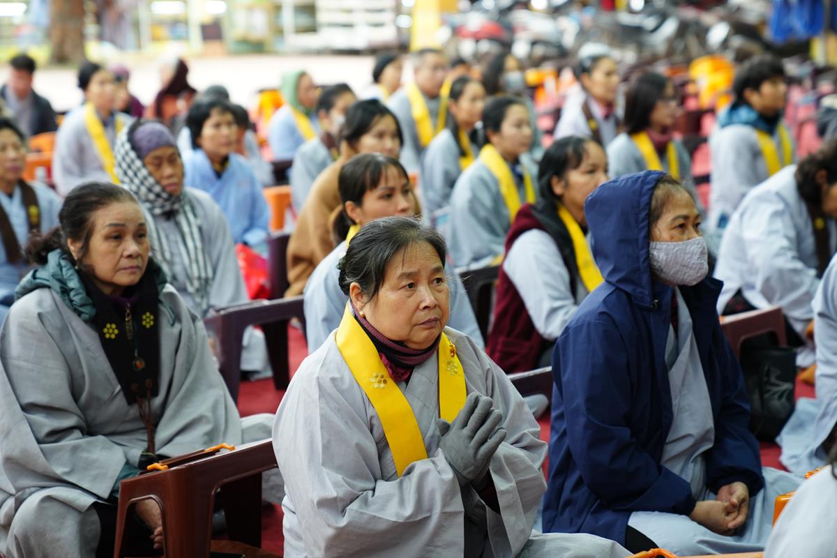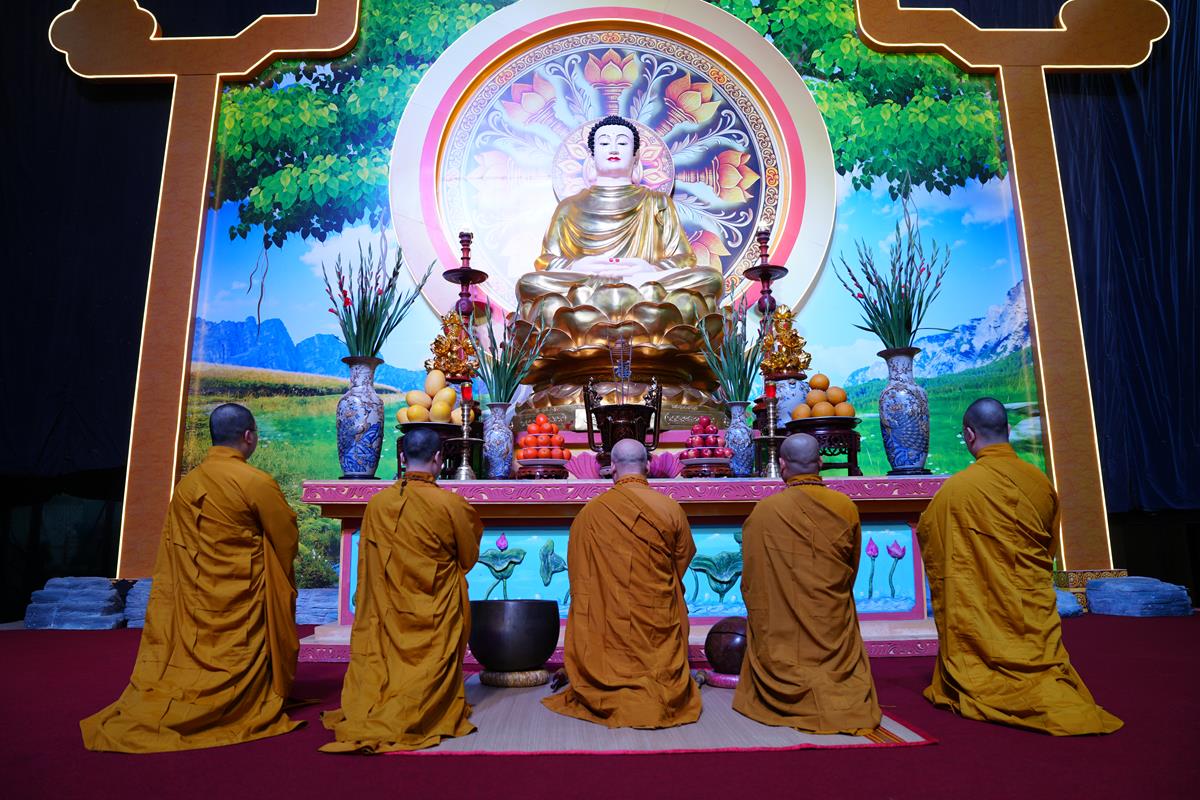 Sau thời pháp thoại ý nghĩa của Thượng tọa truyền trao, đại chúng tiếp tục trang nghiêm chắp tay búp sen đối trước Phật đài, trì tụng Kinh Bổn Môn Pháp Hoa phẩm thứ 25 và 27 Kinh Diệu Pháp Liên Hoa.