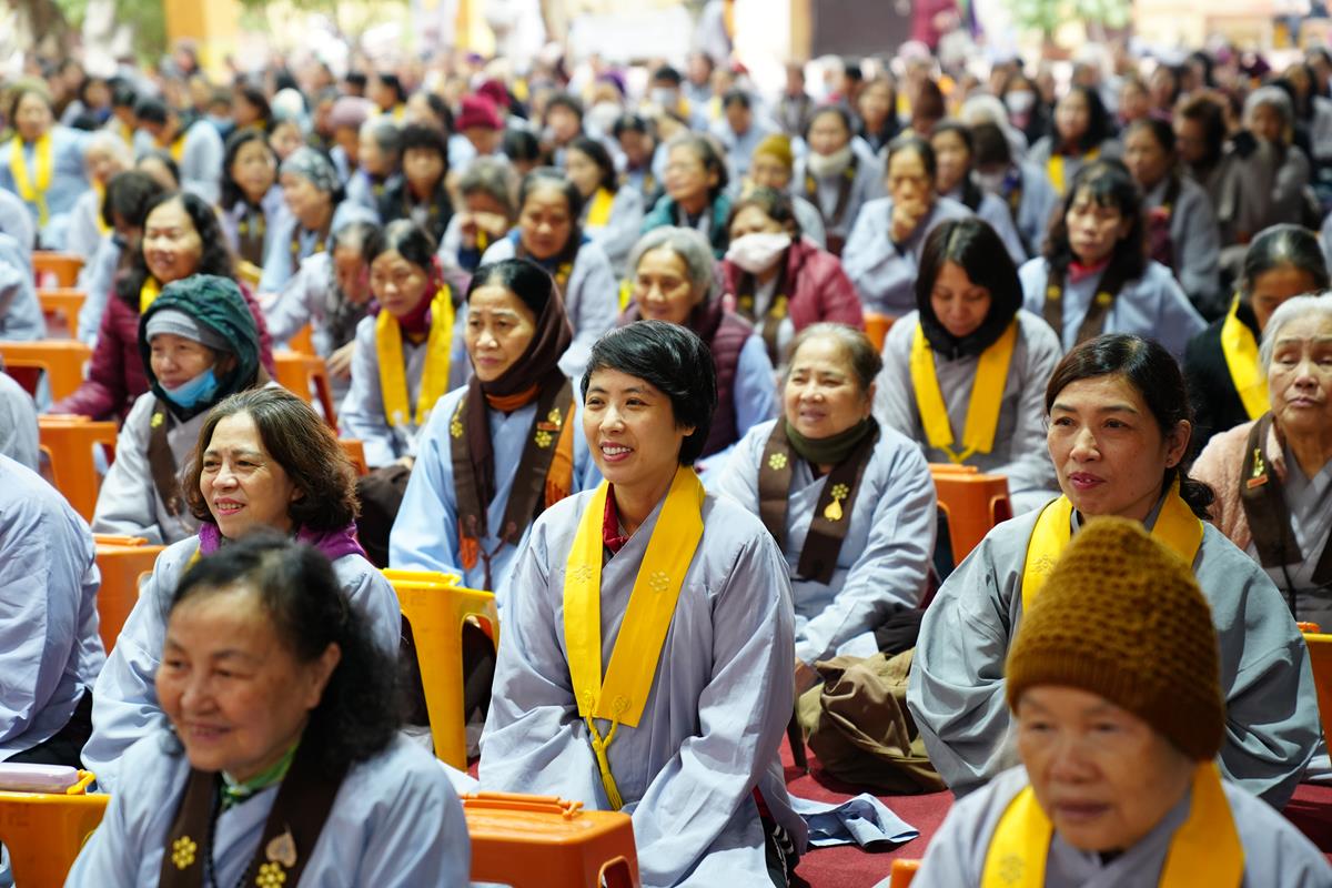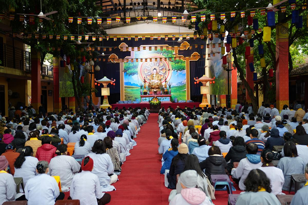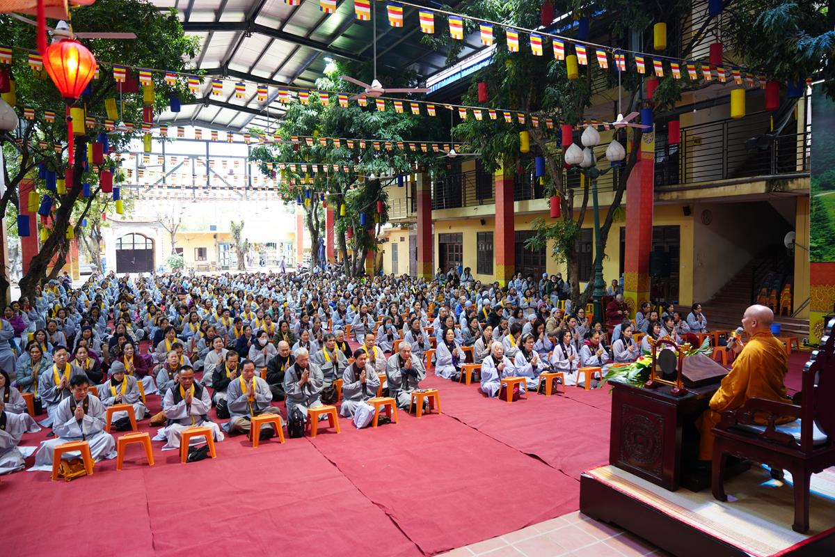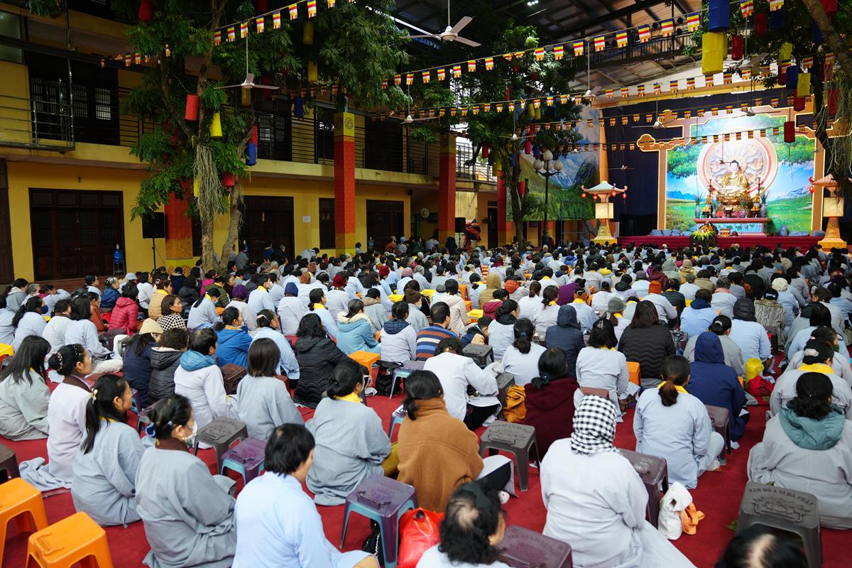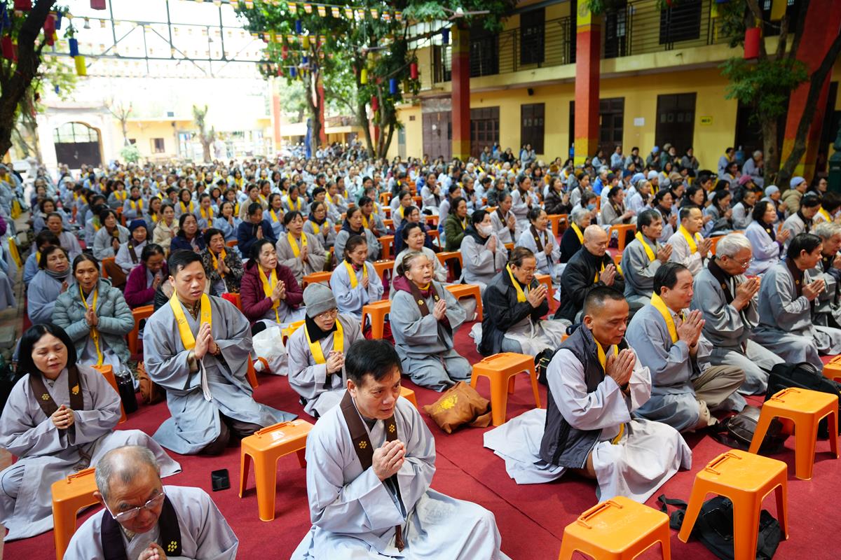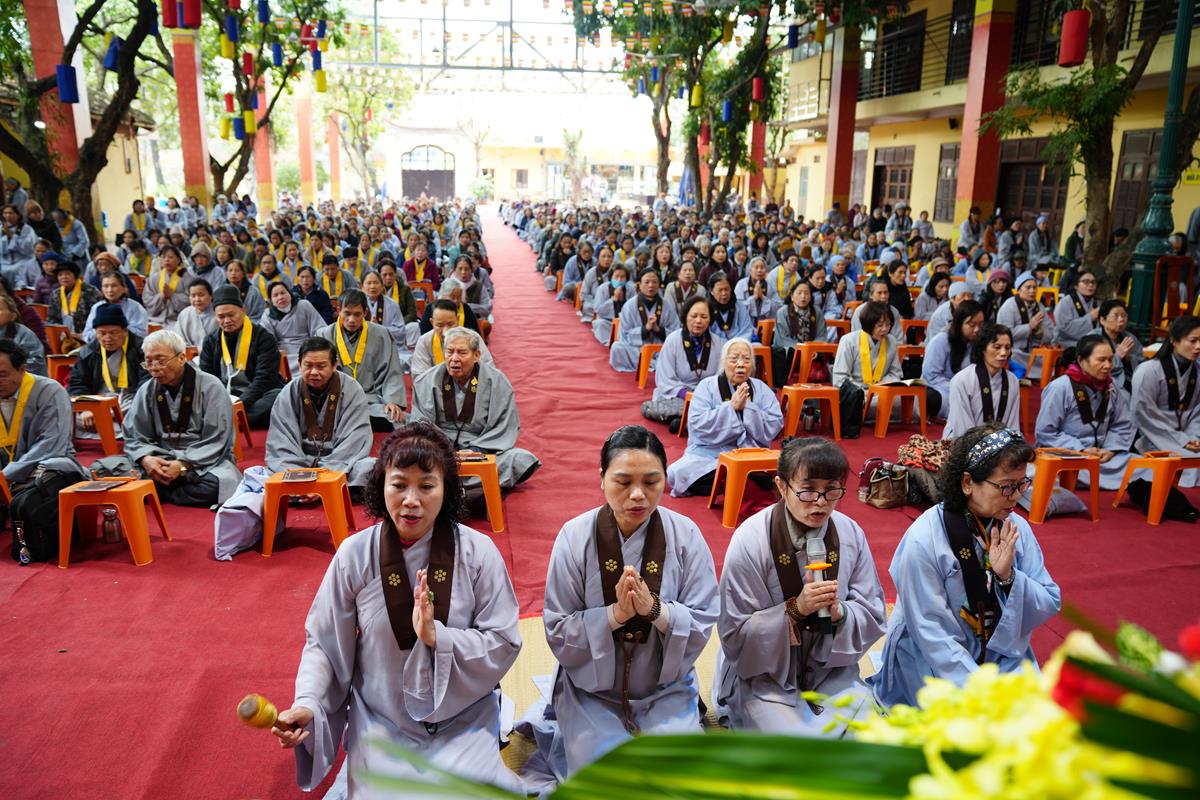 Vào thời khóa buổi chiều, dưới sự dẫn chúng của Chư Tôn đức Tăng chùa Bằng, đại chúng tụng kinh Dược Sư nguyện cầu Phật pháp xương minh, thế giới hòa bình, chúng sinh an lạc, khép lại ngày tu An lạc tháng hai đầy hoan hỷ.