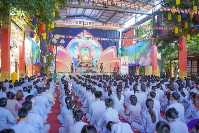 Sau đó, Hòa thượng trụ trì Thích Bảo Nghiêm – Phó Chủ tịch HĐTS GHPGVN, Trưởng ban Hoằng Pháp TƯ, Trưởng ban BTS GHPGVN tp. Hà Nội cũng đã có đôi lời chia sẻ với 550 bạn khóa sinh. Với tấm lòng cầu thị của mình, Hòa thượng mong muốn đón nhận ý kiến đóng góp của khóa sinh để hoàn thiện cho khóa tu thành công viên mãn trong niềm hoan hỷ của tất cả mọi người. Trong cái nắng nóng cao độ của ngày hè, những cô bác công quả vẫn vất vả nấu từng bữa cơm ngon, các bạn đội quản sinh – an ninh vẫn tích cực chăm lo cho đời sống các khóa sinh, các anh thợ điện, âm thanh, đội truyền thông túc trực phục vụ không ngừng nghỉ. Hòa thượng muốn các bạn Khóa sinh thấy được sự vất vả của một tập thể lớn để tạo nên những ngày tu học thật an nhiên và tốt nhất.