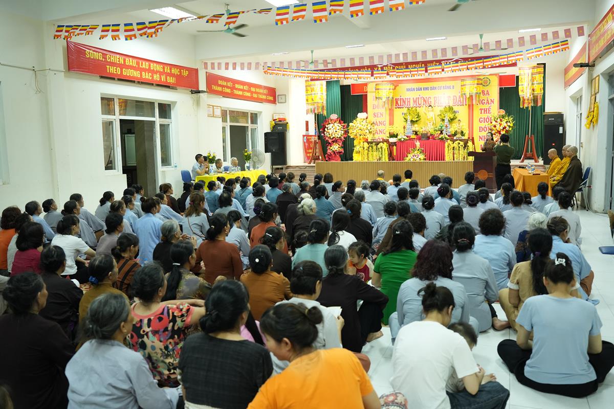 Đây đã là năm thứ ba lãnh đạo và nhân dân khu dân cư Bằng B quyết định tổ chức lễ Phật đản với quy mô lớn hơn, theo đúng nghi thức hành chính của Giáo hội Phật giáo Việt Nam, và tha thiết thỉnh mời Hòa thượng Thích Bảo Nghiêm – Phó chủ tịch HĐTS, Trưởng Ban Hoằng pháp TƯ, trụ trì chùa Bằng cùng chư Tôn đức Tăng bản tự quang lâm chứng minh buổi lễ.