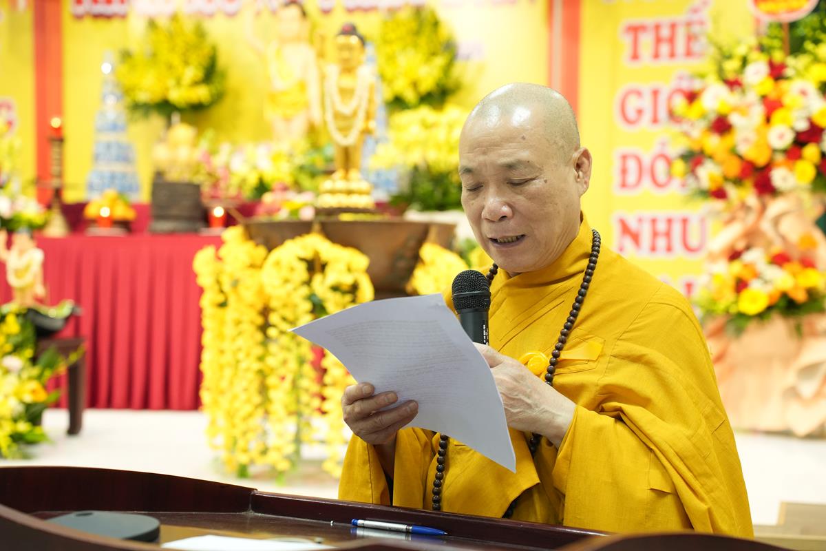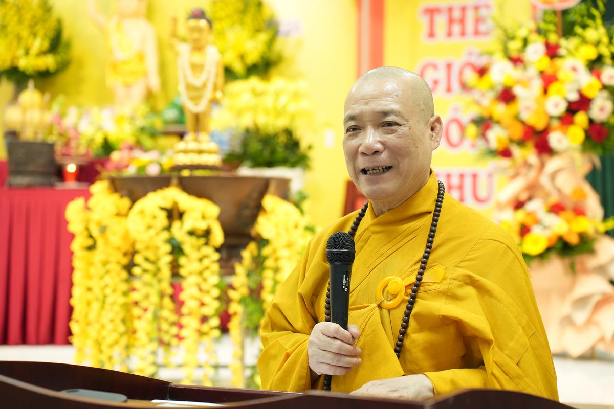 Tại đây, Hòa thượng Thích Bảo Nghiêm đã tuyên đọc Thông điệp Phật đản PL.2568 – DL.2024 của Đức Pháp Chủ GHPGVN, đồng thời chia sẻ với đại chúng về khái quát lịch sử cuộc đời Đức Phật cũng như ý nghĩa sự kiện Đản sinh của Ngài.