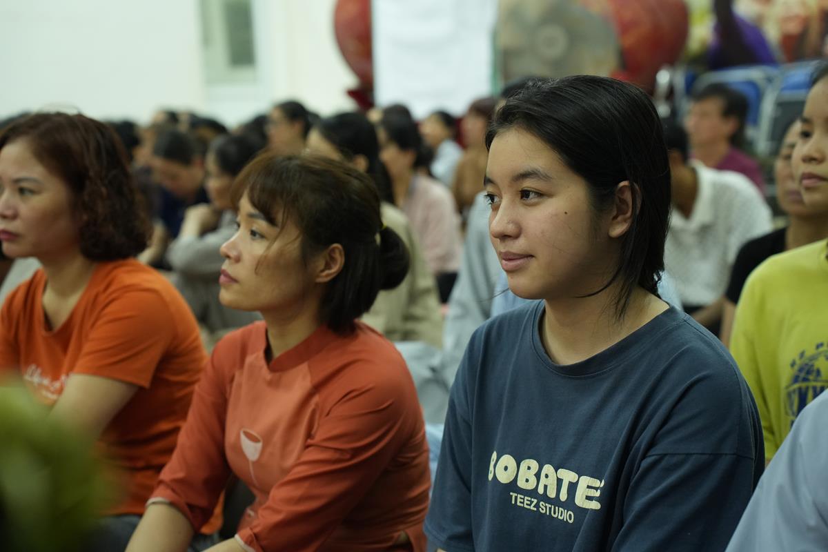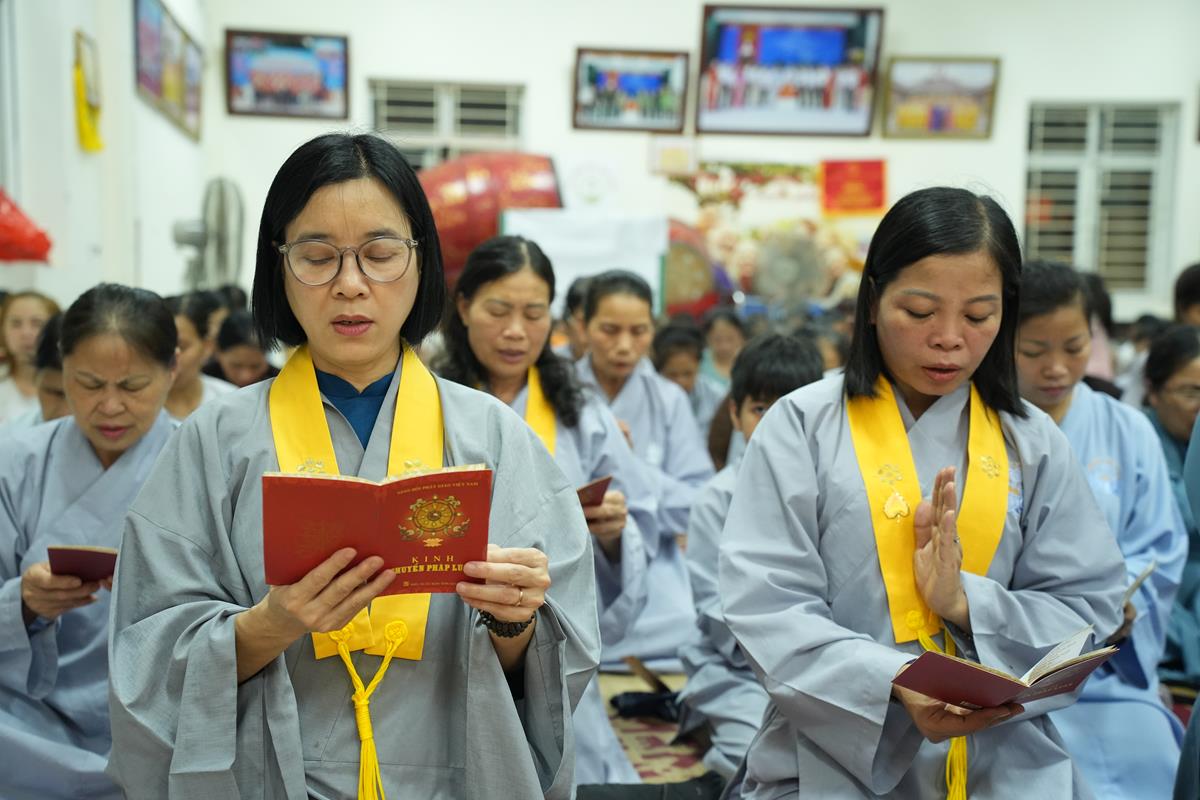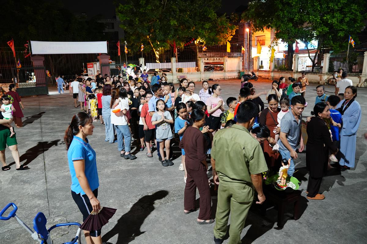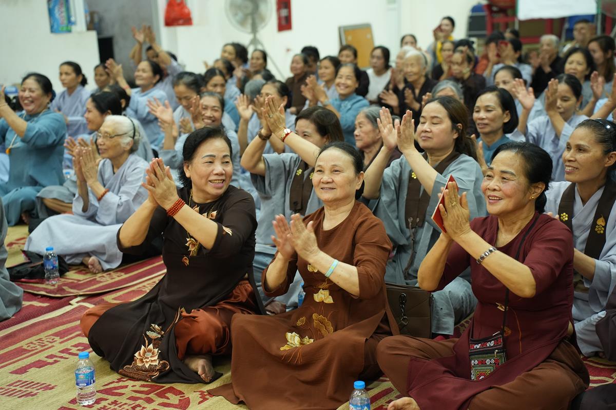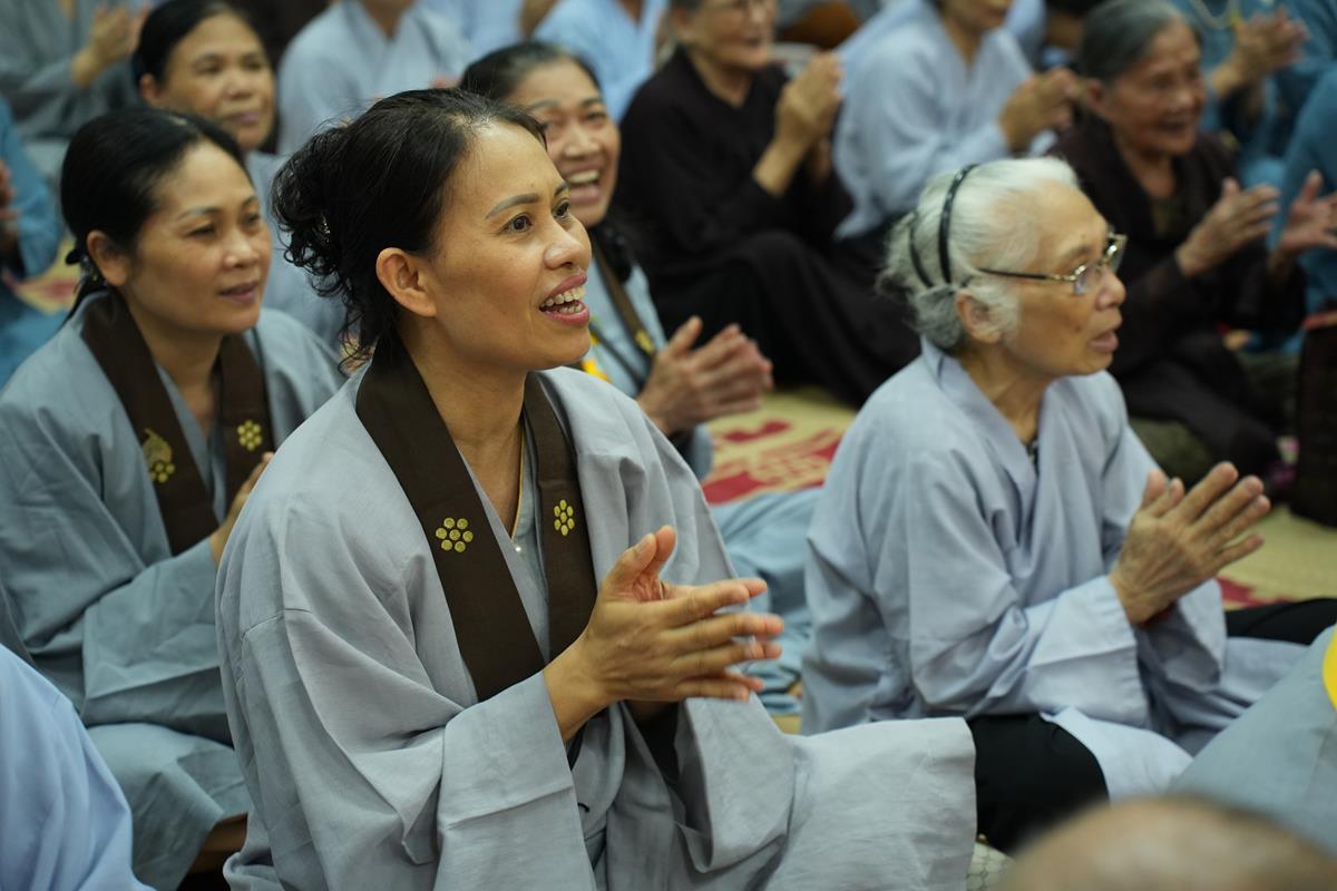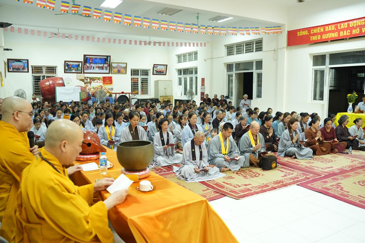 Giây phút mà toàn thể người dân mong chờ nhất, chính là lúc chư Tôn đức cùng đại chúng tụng kinh Phật đản và làm lễ tắm Phật. Già trẻ gái trai trong khu dân cư nô nức xếp hàng chờ tắm Phật. Chư Tăng cùng đại diện Đạo tràng tỉ mỉ hướng dẫn những em bé ánh mắt sáng ngời chắp tay cung kính cầm chiếc gáo tưới nước lên Tôn tượng Đức Bản Sư trong niềm hân hoan háo hức. Nhà văn hóa Bằng B vô cùng đông vui nhộn nhịp kính mừng ngày Đức Thế Tôn thị hiện nơi đời, vì hạnh phúc cho số đông, vì an lạc cho chư Thiên và loài người.