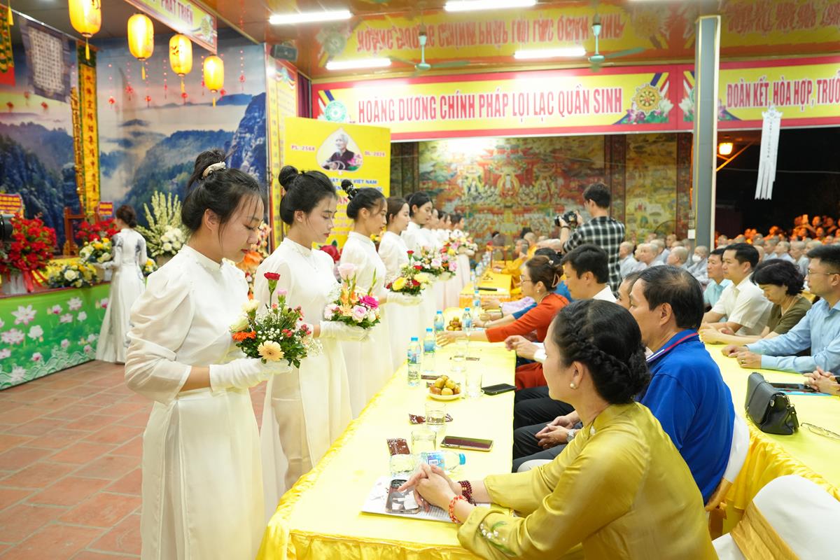 Mở đầu chương trình, là tiết mục dâng hoa cúng dàng của các bạn Thanh thiếu niên Phật tử chùa Bộc. Những giỏ hoa tươi thắm biểu trưng cho tấm lòng thơm thảo bày tỏ niềm biết ơn của những người con Phật dâng lên Đức Từ Phụ vì những giáo lý vi diệu mà Ngài đã để lại cho nhân gian, đưa chúng sinh thoát ra khỏi biển khổ sông mê, tránh ác làm lành, sống đời tỉnh thức.