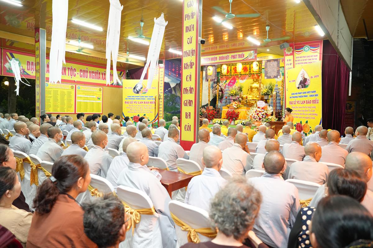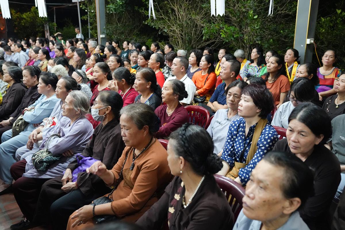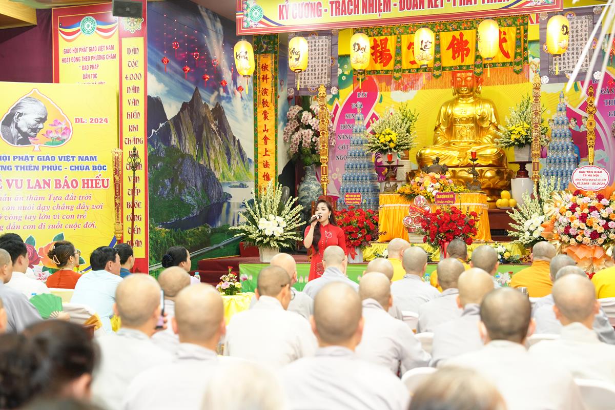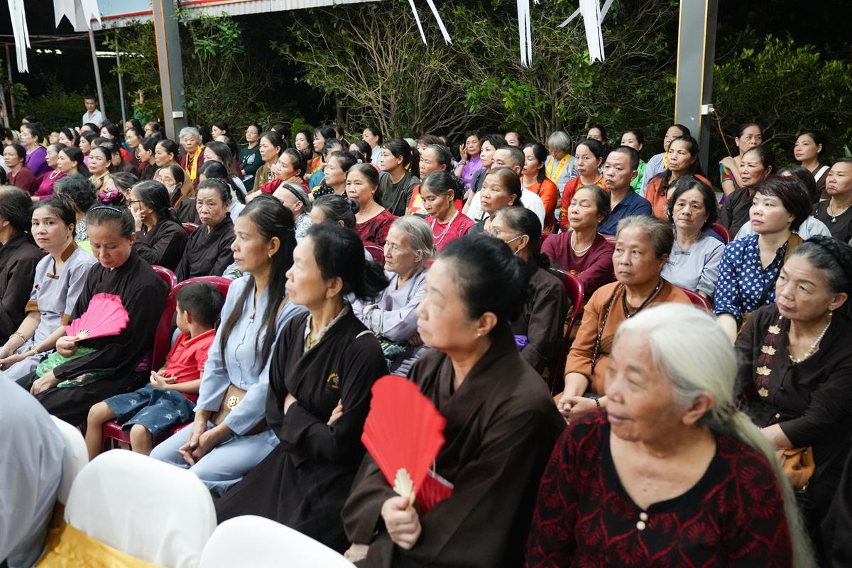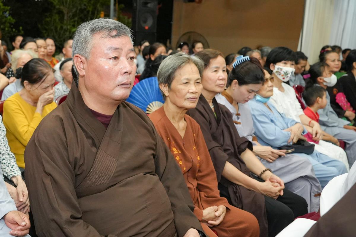 Trong không khí trang nghiêm, lắng đọng, toàn thể hội chúng đã được lắng nghe bài cảm niệm Vu Lan qua giọng đọc của NSND Lan Hương, cùng tiếng đàn bầu da diết của NS Hồng Tiếp và tiếng đàn tranh du dương của NS Trà My. Hai âm thanh mang đậm bản sắc văn hóa dân tộc Việt hòa quyện với nhau, kết hợp khéo léo cùng những lời tâm tình về cha mẹ của NSND Lan Hương đã khiến nhiều người không khỏi bùi ngùi, xúc động khi nhớ về 2 đấng sinh thành, nhất là đối với những ai đã mất đi cả cha và mẹ.