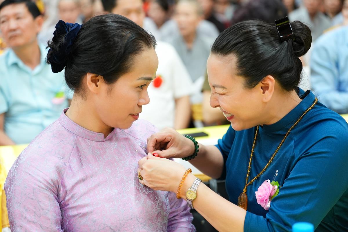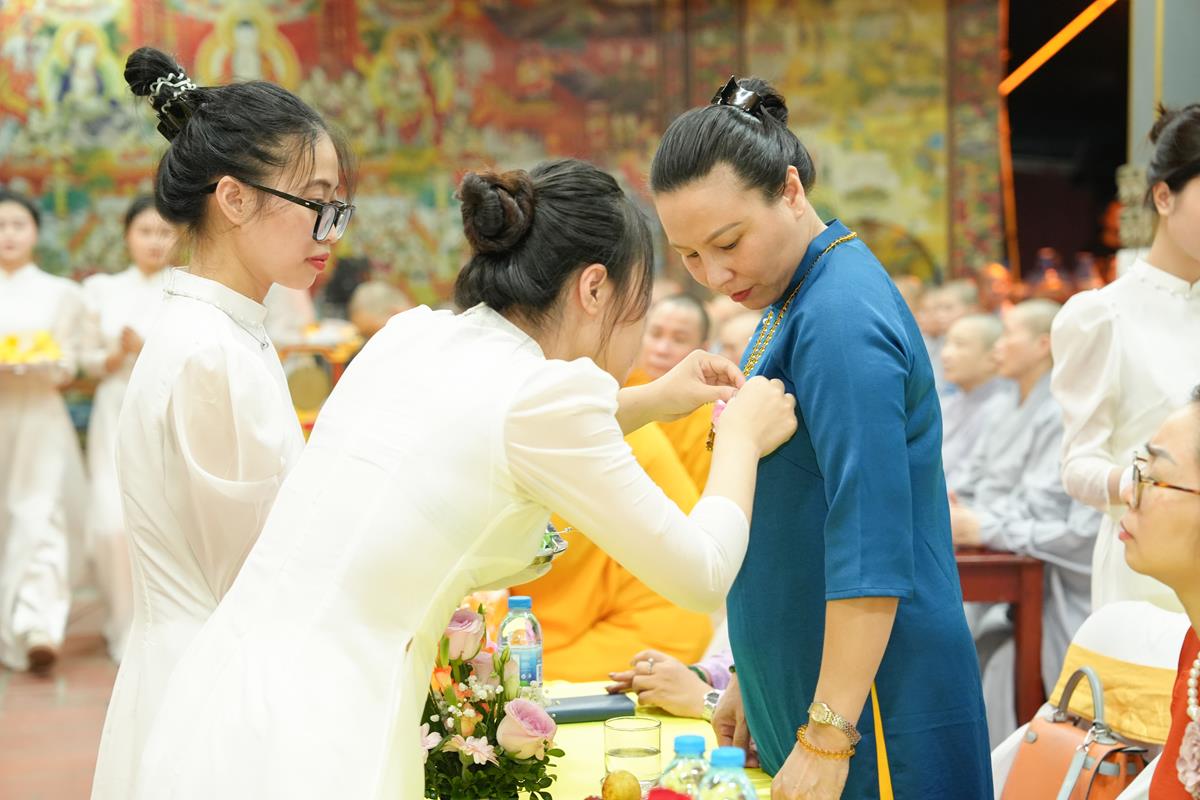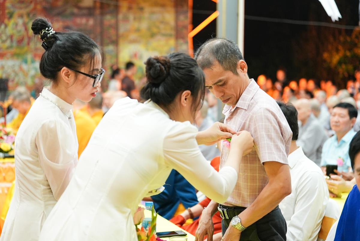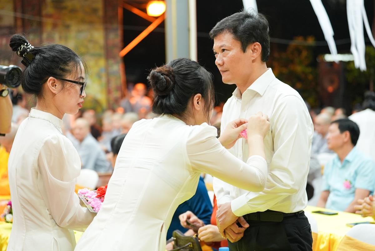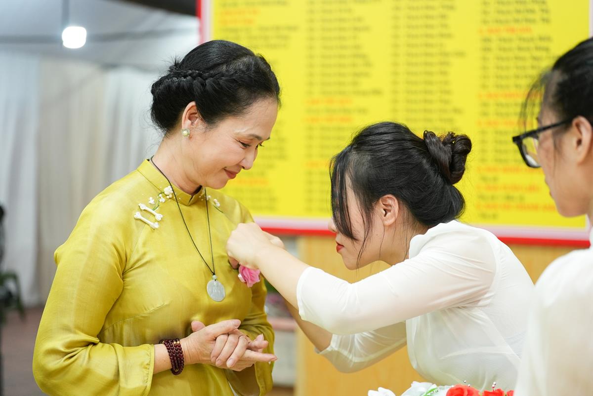 Mỗi người đều được cài trên ngực áo của mình những bông hoa hồng biểu tượng của lòng hiếu thảo, của những nỗi nhớ niềm thương sâu sắc gửi tới song thân.