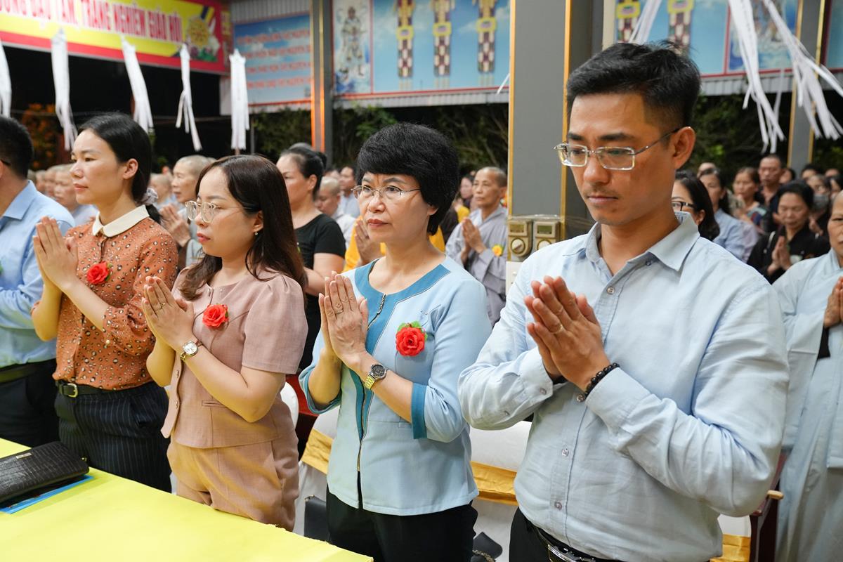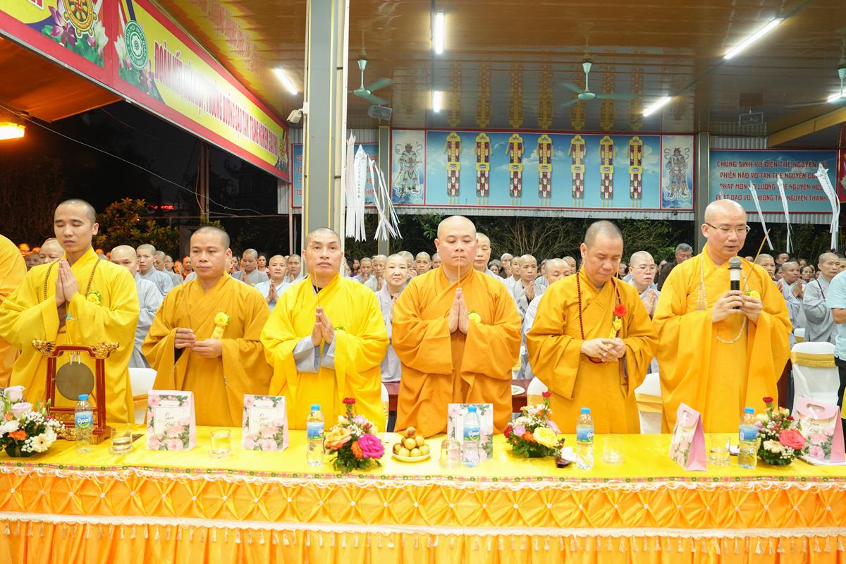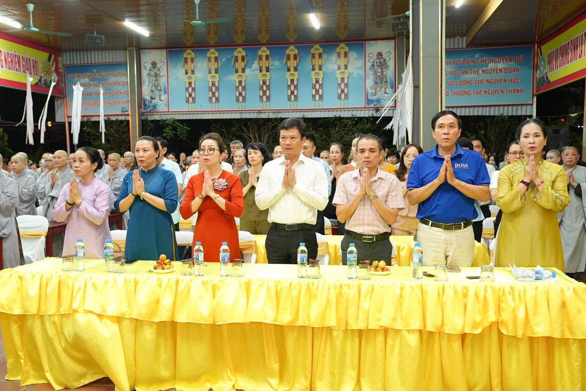 Sau lời cảm tạ của TT. Thích Đạo Thông, chư Tôn đức, quý vị quan khách cùng nhân dân, Phật tử đã khởi thân trang nghiêm, thắp nén tâm hương cầu nguyện tưởng nhớ tới công ơn của chư Phật, công ơn giáo dưỡng của thầy tổ, công ơn của các vị thánh tử đạo đã dâng trọn đời mình cho đạo pháp được trường tồn, đặc biệt, tưởng nhớ đến các vị tiền bối hữu công, tưởng nhớ đến các chiến sĩ đã vị quốc vong thân cho đất nước hòa bình hạnh phúc. Đồng thời hồi hướng về cho Tổ tiên ông bà cha mẹ trong nhiều đời nhiều kiếp được siêu sinh Tịnh độ, đồng cầu nguyện cha mẹ ông bà hiện tiền tăng phúc tăng thọ.