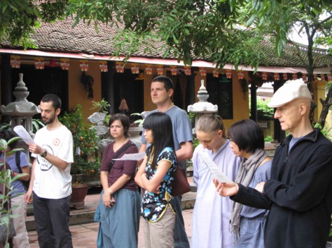 Trong 2 ngày nghỉ lễ 30/4 và 1/5/2009, tại chùa Đình Quán – Hà Nội, chúng tôi đã tình cờ ghi lại được hình ảnh một số người nước ngoài ở Hà Nội, họ là sinh viên, doanh nhân, khách du lịch, cán bộ khoa học …(Trong đó, có người từng theo Tin Lành, theo Đạo Thiên Chúa và cả Đạo Hồi) đến Chùa đỉnh lễ và học Thiền.