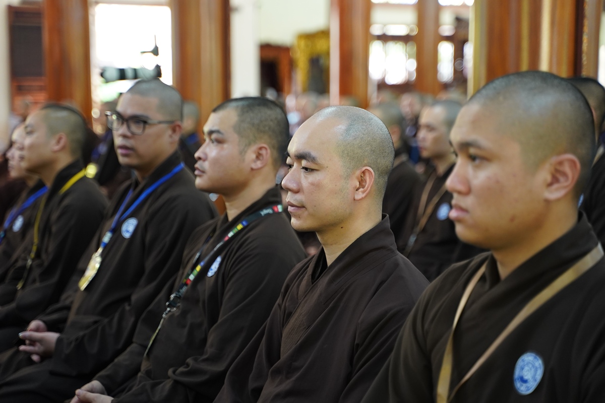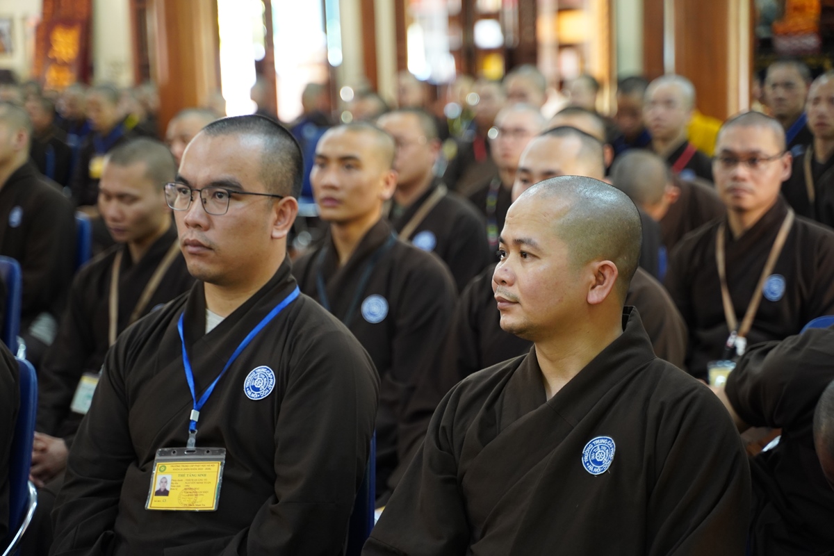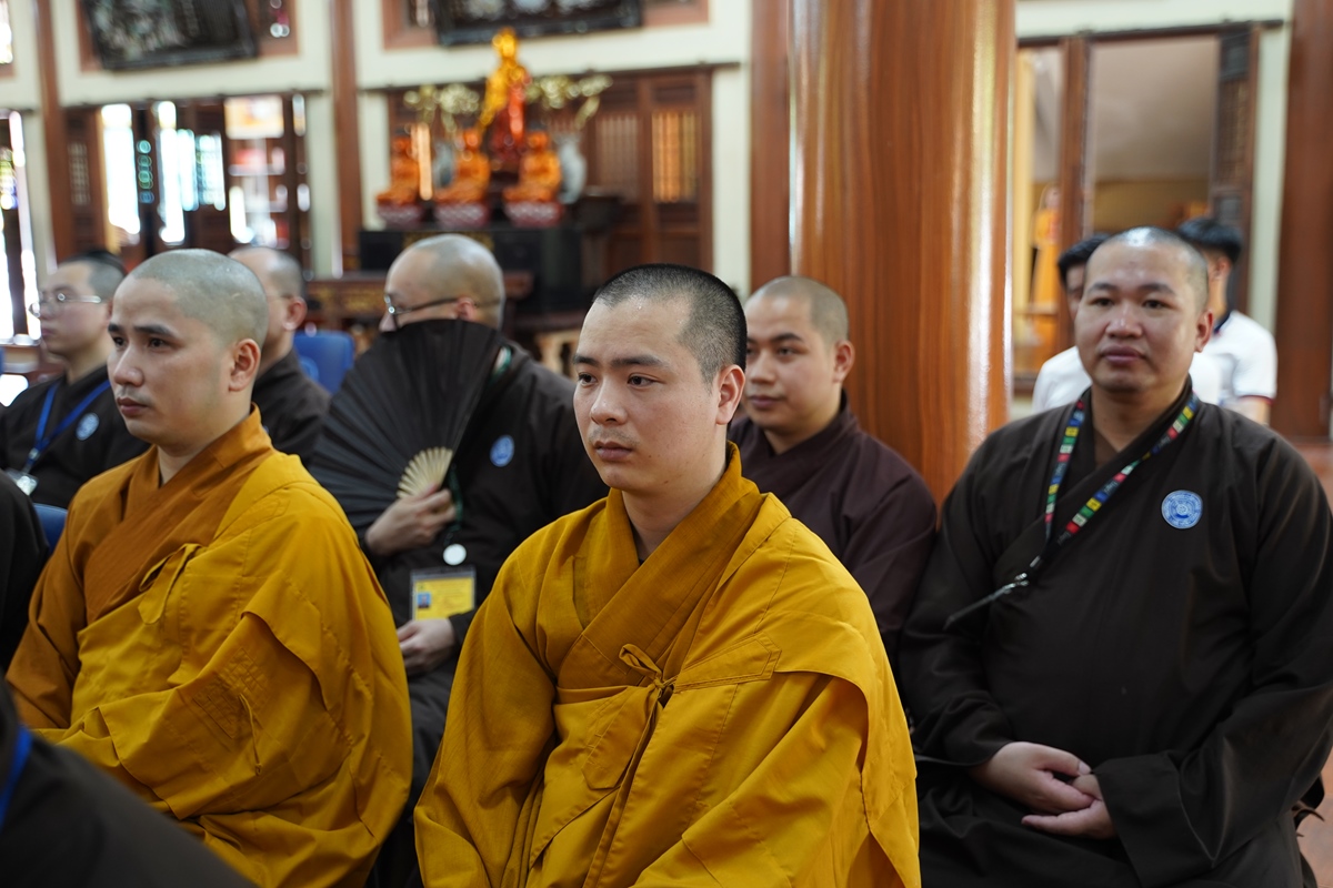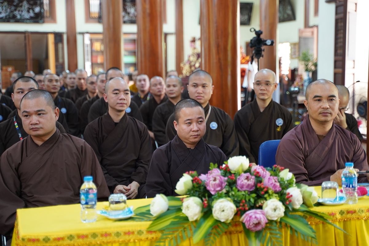 Đại đức Thích Thái Minh – Ủy viên BTS GHPGVN thành phố Hà Nội, Trưởng BTS GHPGVN huyện Đan Phượng, Chánh văn phòng trường Trung cấp Phật học Hà Nội, Chánh duy na Hạ trường (ngoài cùng bên trái)