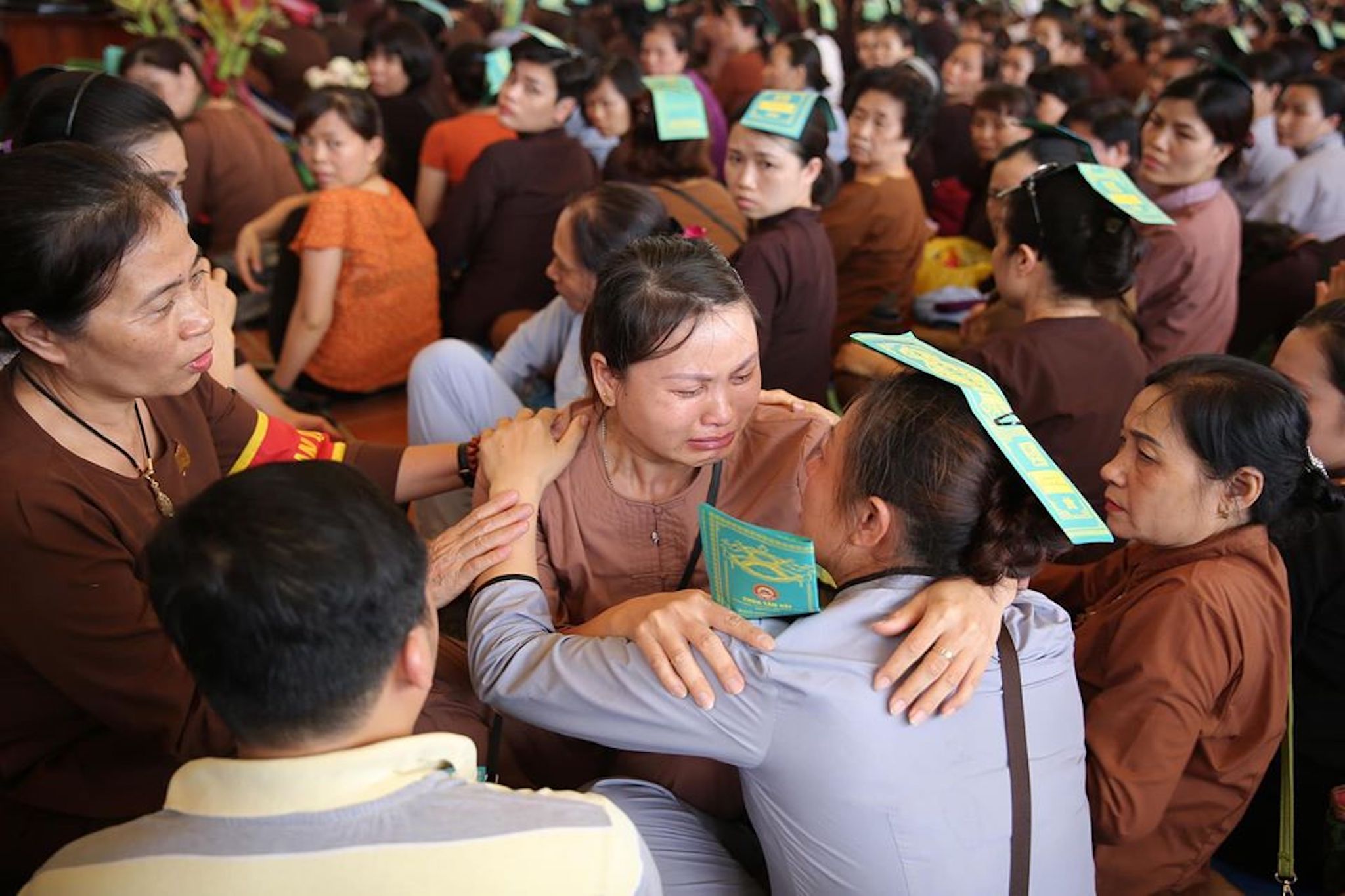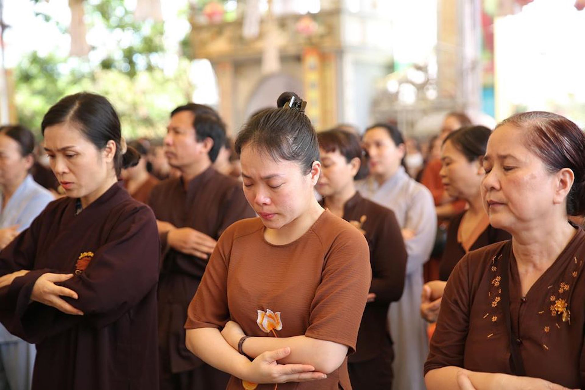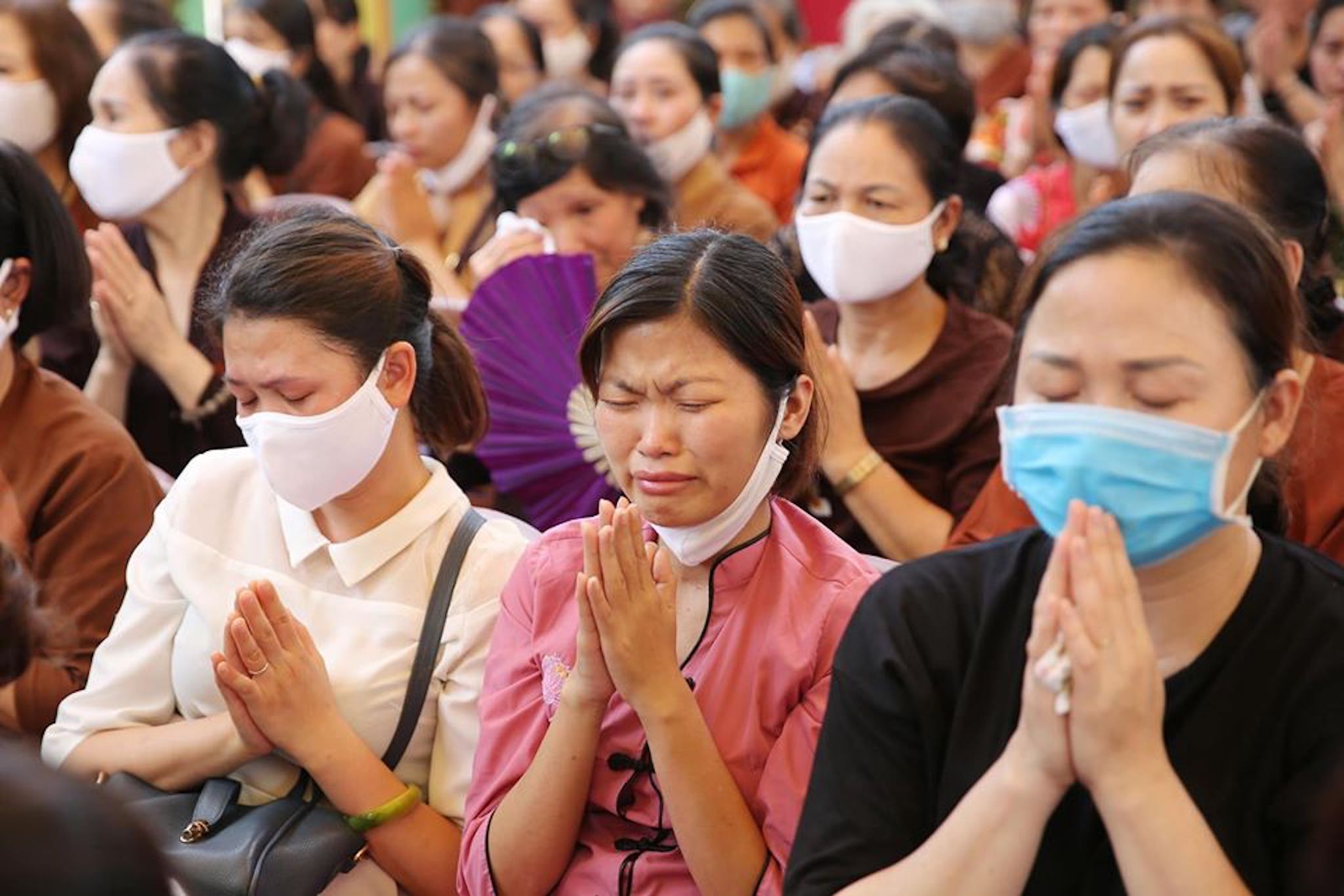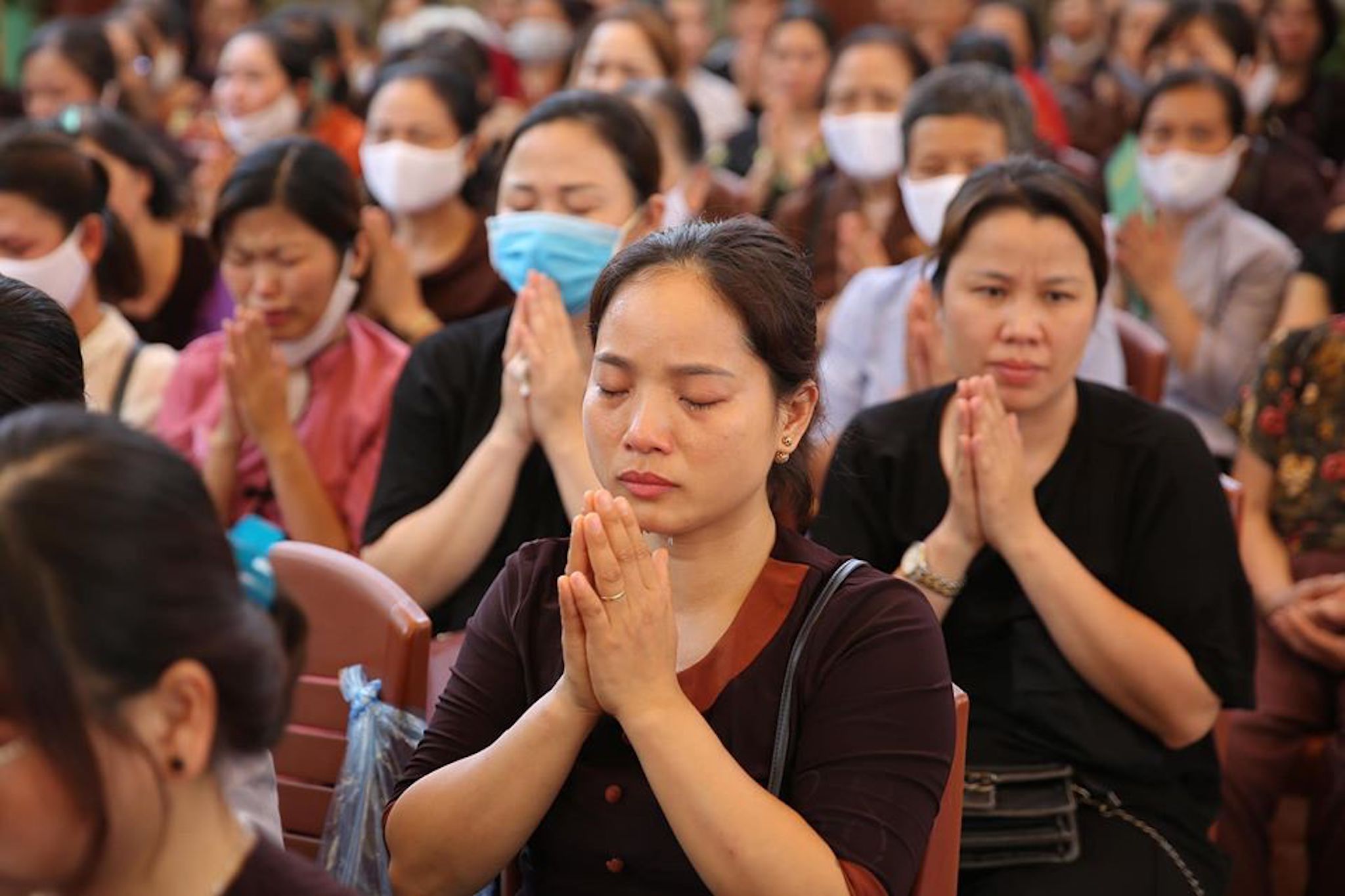 Các bà mẹ trẻ thành tâm sám hối về những việc mình đã gây tạo tại Pháp hội cầu siêu thai nhi chùa Tân Hải