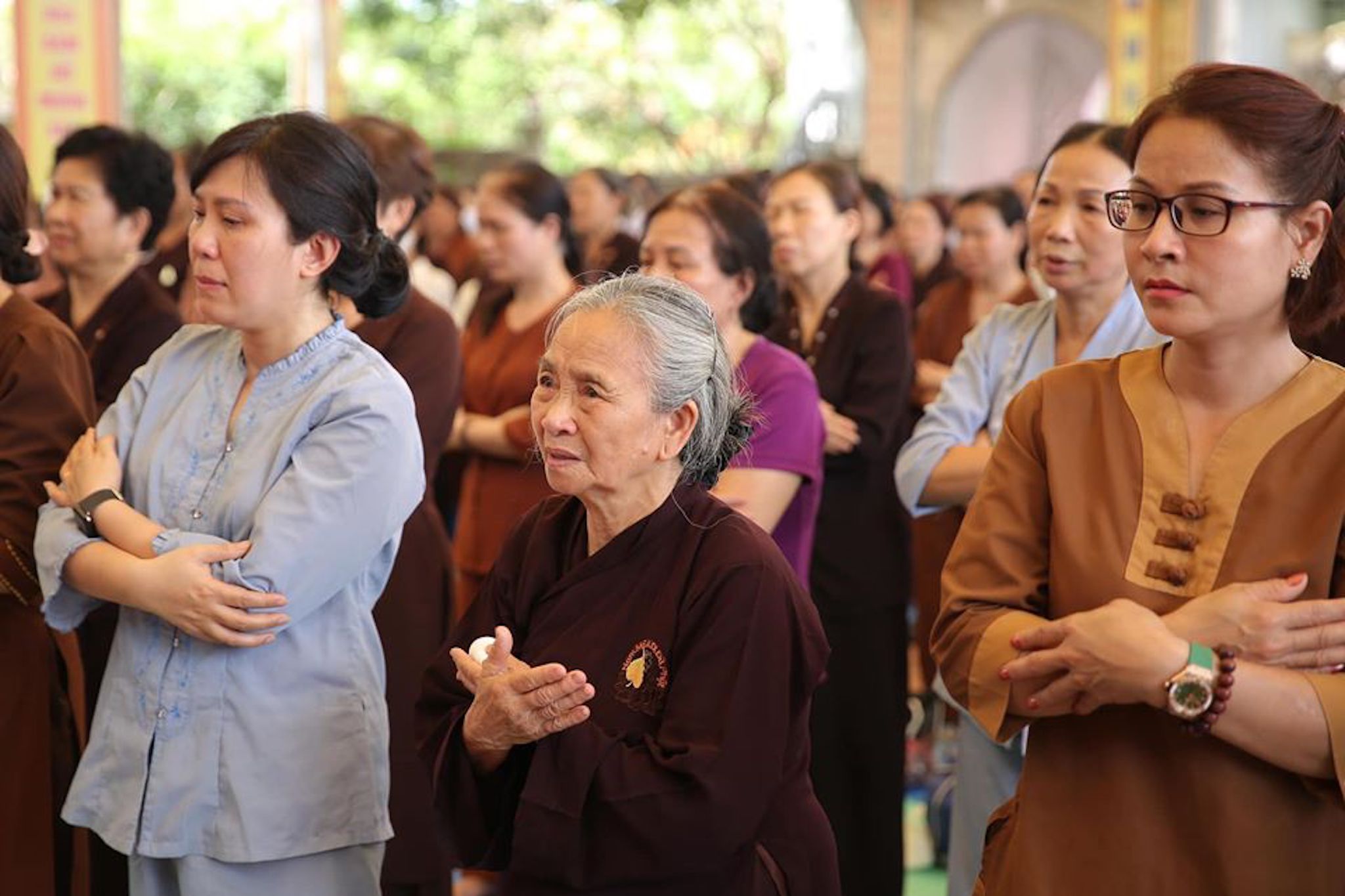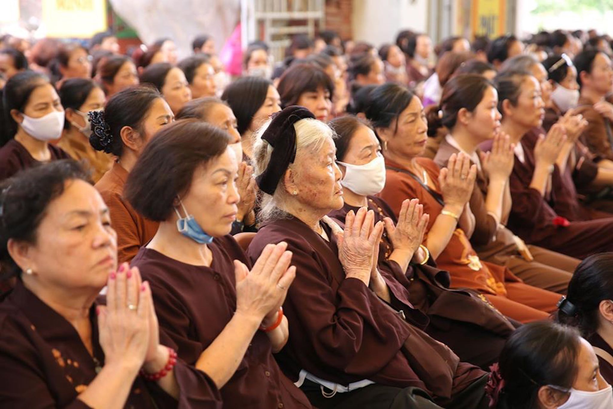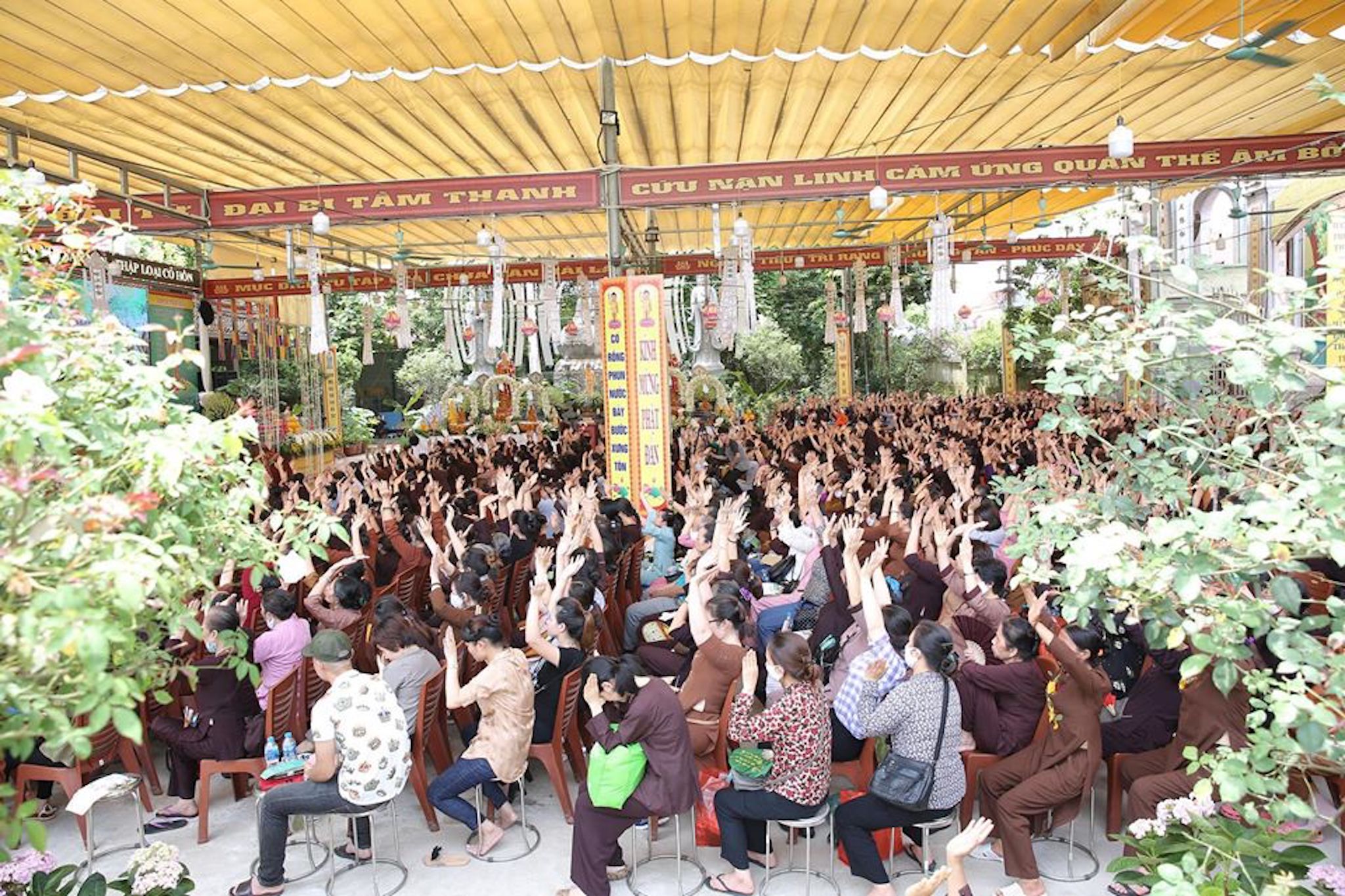 Các bà mẹ trẻ thành tâm sám hối về những việc mình đã gây tạo tại Pháp hội cầu siêu thai nhi chùa Tân Hải