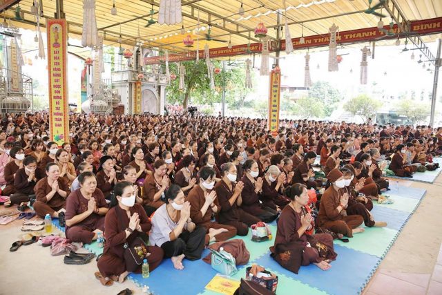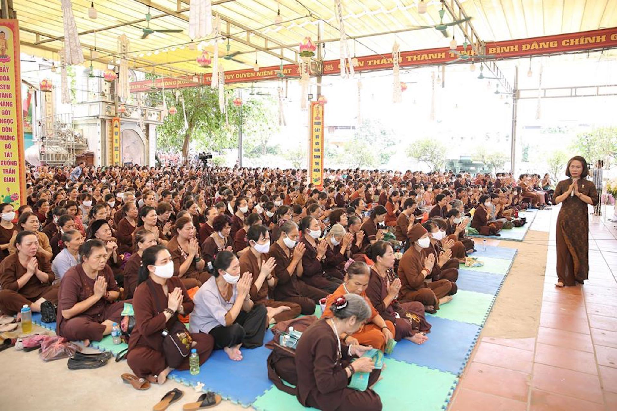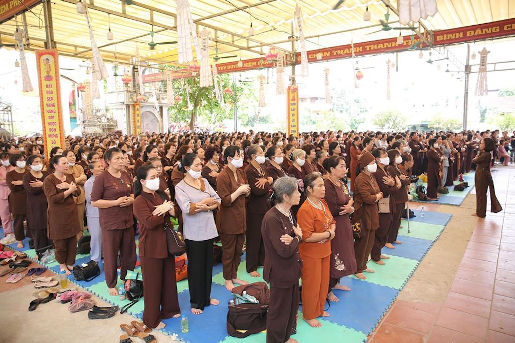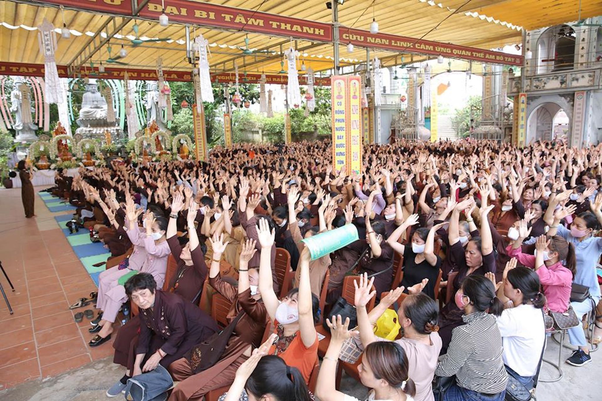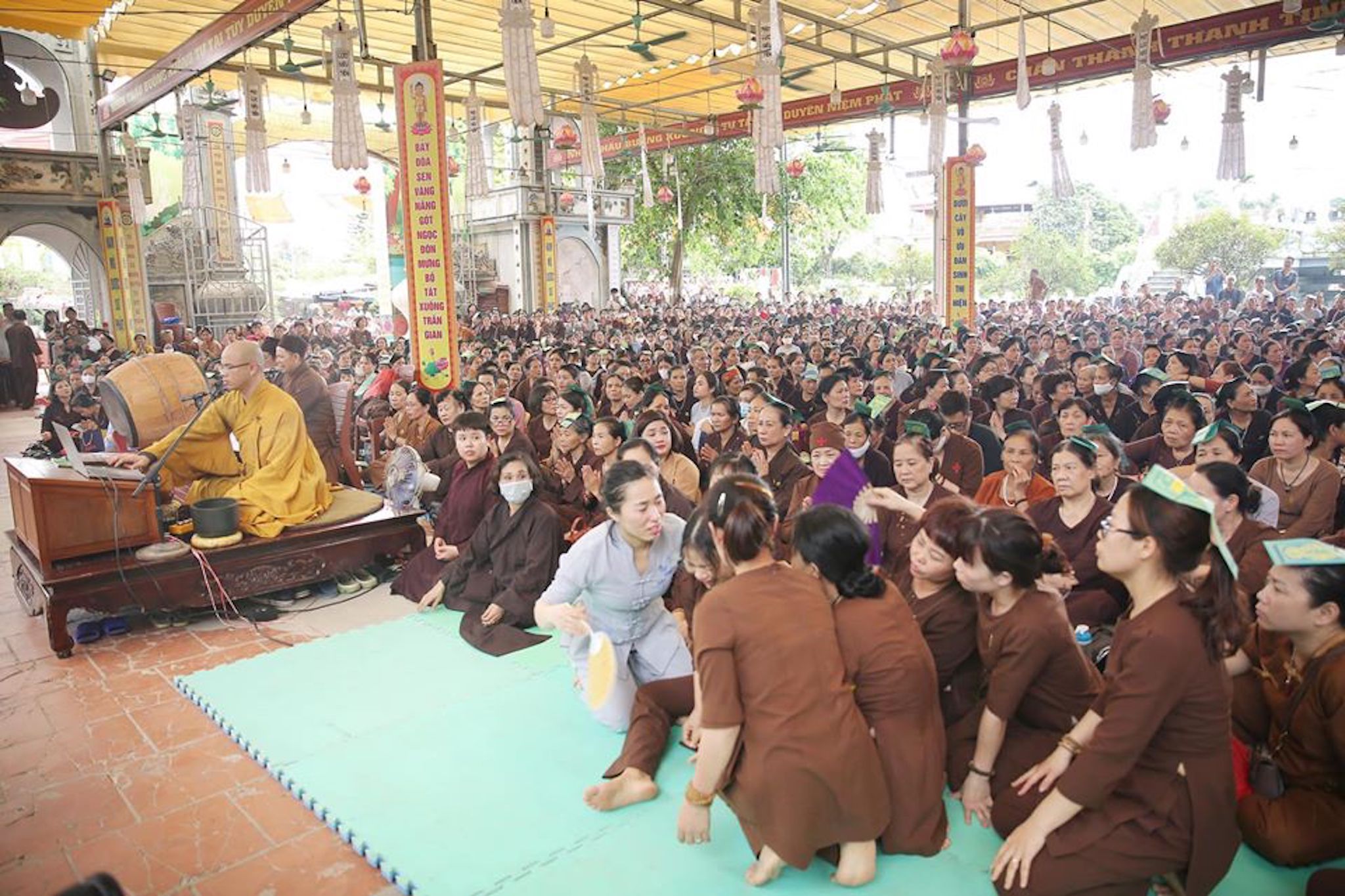 Các bà mẹ trẻ thành tâm sám hối về những việc mình đã gây tạo tại Pháp hội cầu siêu thai nhi chùa Tân Hải