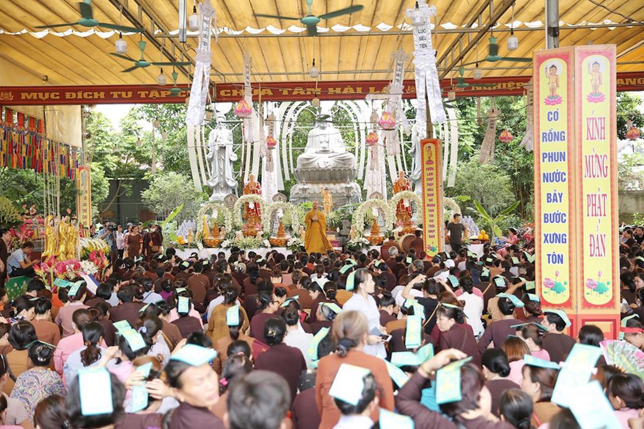 Đông đảo Phật tử vân tập về chùa Tân Hải tham dự Pháp hội cầu siêu thai nhi, sản nạn nhân ngày Quốc tế thiếu nhi