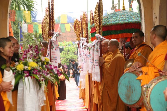 Đúng 10h12 phút, Đức Pháp Vương quang lâm chùa Quang Ân trong tiếng hòa âm dẫn chào của dàn nhạc khí Kim Cương thừa mạnh mẽ hào hùng tràn đầy năng lượng giác ngộ.