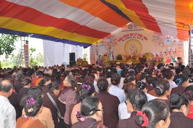 Thay mặt cho lãnh đạo chính quyền, bà Nguyễn Thị Tám đã có lời phát biểu, chúc mừng toàn thể Tăng ni, Phật tử có một mùa Phật đản an lạc trong niềm hoan hỷ chung của nhân loại. Đồng thời, bà cũng bày tỏ mong muốn tiếp tục nhận được sự quan tâm, đóng góp của Phật giáo vào các hoạt động ích nước, lợi dân góp phần phát triển quê hương ngày càng giàu đẹp. Nhân dịp này, đại diện lãnh đạo các ban ngành chức năng đã tặng những lẵng hoa tươi thắm chức mừng buổi Đại lễ.