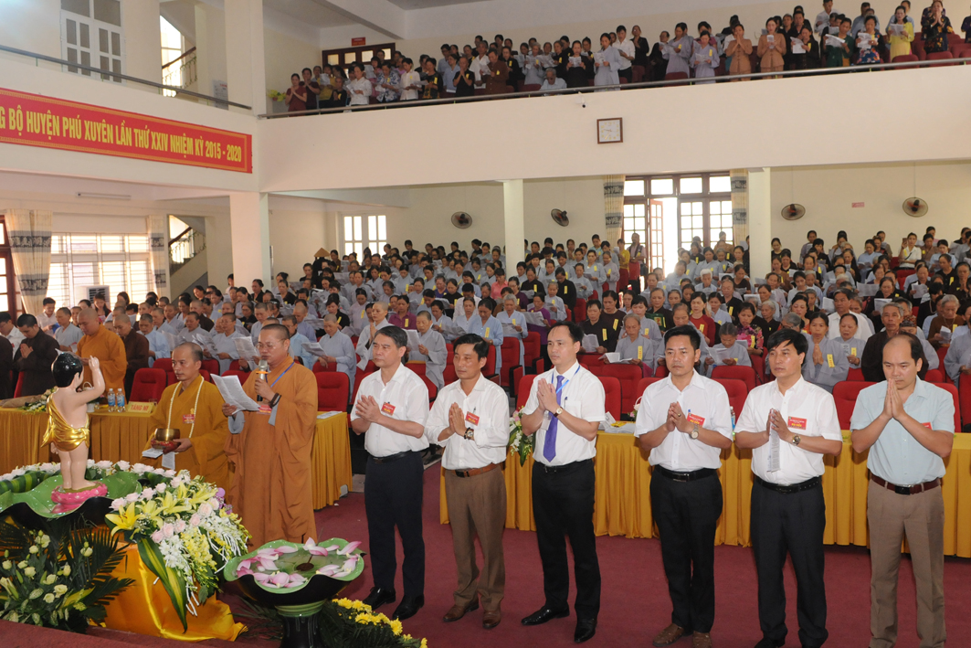 Thay mặt cho lãnh đạo chính quyền, ông Trần Công Thành đã có lời phát biểu, chúc mừng toàn thể Tăng ni, Phật tử có một mùa Phật đản an lạc trong niềm hoan hỷ chung của nhân loại. Đồng thời, ông cũng bày tỏ mong muốn tiếp tục nhận được sự quan tâm, đóng góp của Phật giáo vào các hoạt động ích nước, lợi dân góp phần phát triển quê hương ngày càng giàu đẹp. Đại diện lãnh đạo các ban ngành chức năng đã tặng những lẵng hoa tươi thắm chức mừng buổi Đại lễ. Nhân dịp Đại lễ Phật đản, Giáo hội Phật giáo Việt Nam huyện Phú Xuyên đã tặng 2 căn nhà cho gia đình khó khăn, trị giá mỗi căn nhà 50.000.000 đồng (Năm mươi triệu đồng chẵn).