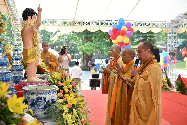 Cuối buổi lễ, chư Tôn đức và toàn thể hội chúng đã dâng hương bạch Phật, khai lễ, xướng tụng hồng danh Đức Bản Sư Thích Ca Mâu Ni Phật, tụng kinh kính mừng Phật đản. Chư tôn đức cùng toàn thể quý vị đại biểu và Phật tử tham gia nghi thức tắm Phật trong niềm hoan hỷ.
